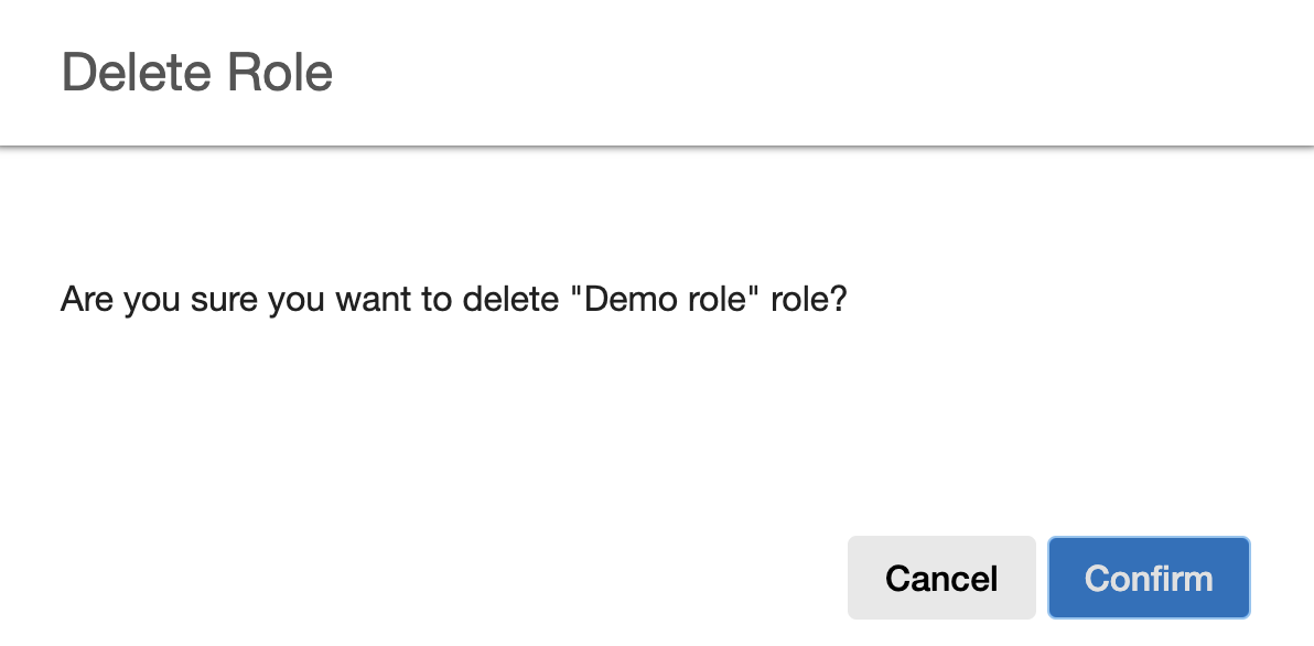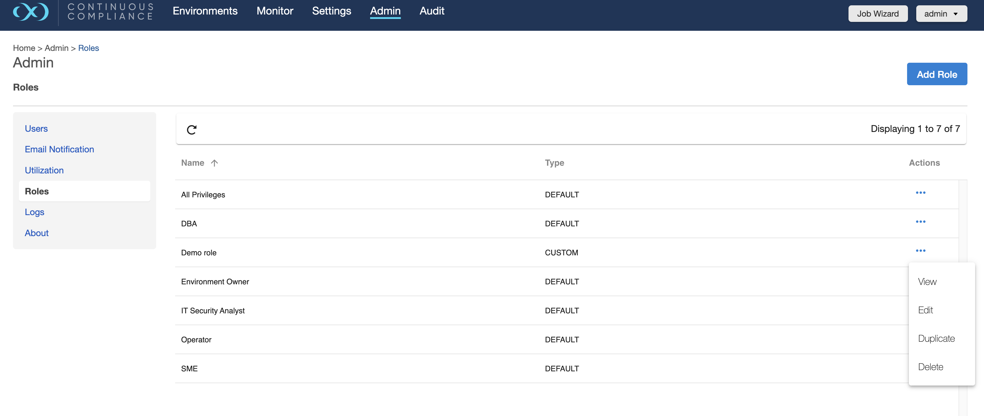 Users can perform 4 types of action on roles by selecting action options from the far right of the grid.