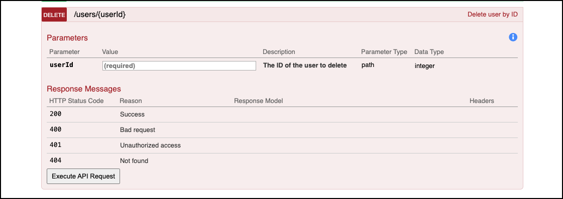click Update user by ID at the upper right of the section and refer to the Example Value for parameters required for new users.