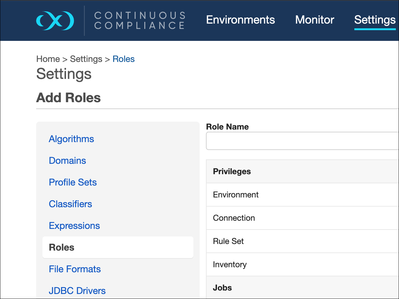 Login into the Masking Engine, select the Settings tab and select Roles from the left navigation panel.