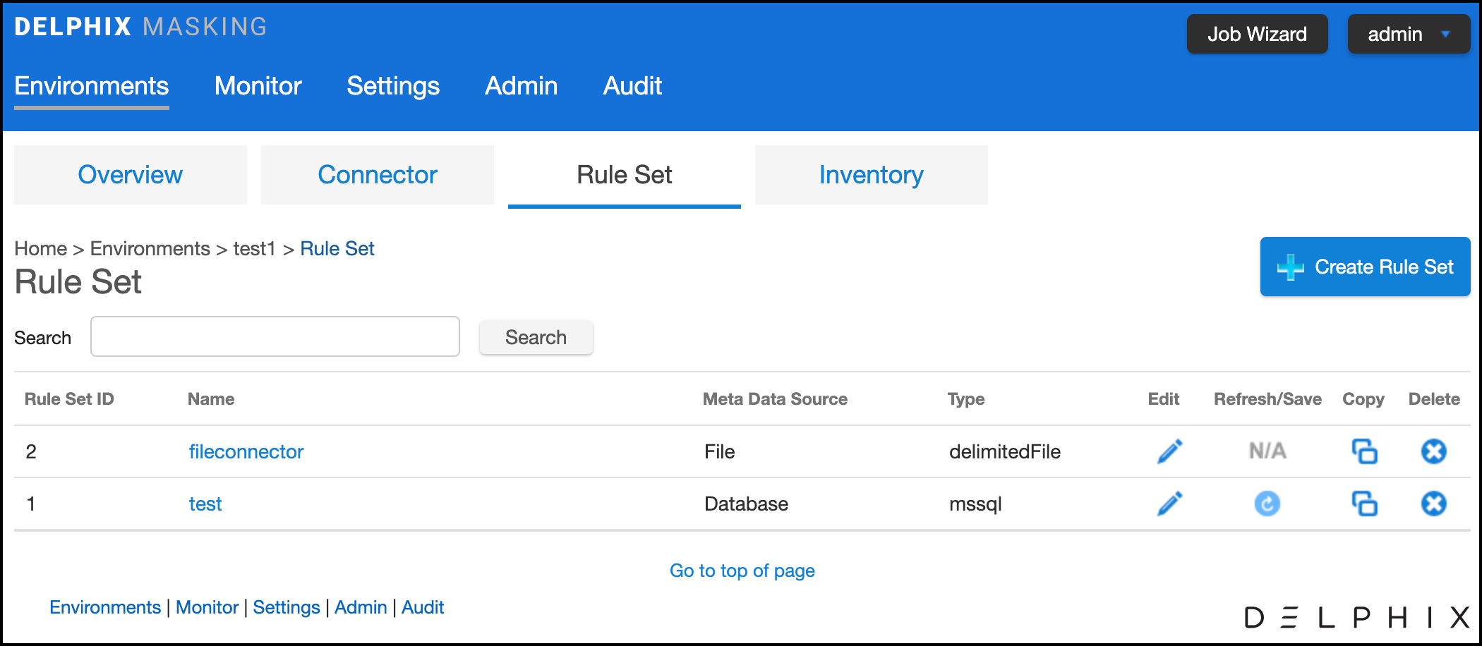 1. Click on the name of an Environment, and then click the rule set tab.