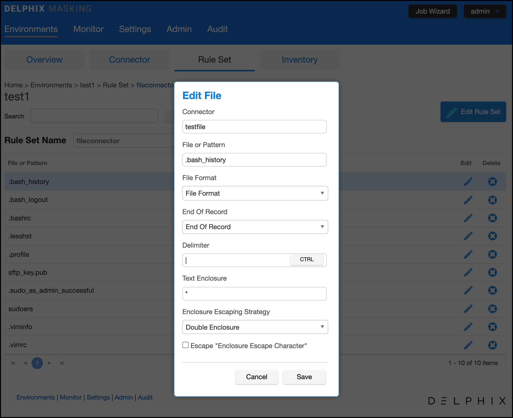 Configure enclosure escape character for the large ruleset