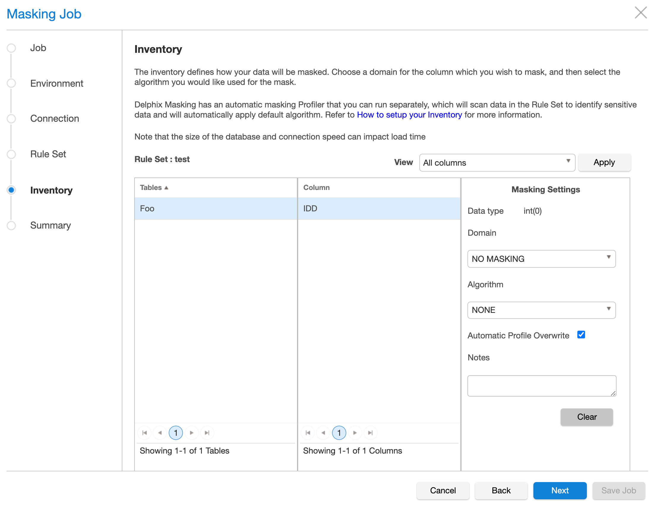 Masking Job Wizard