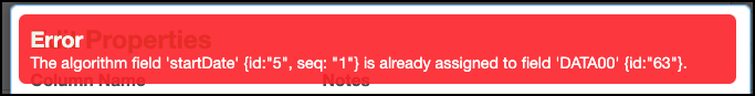 There are different configuration errors possible while setting the MC algorithms. The configuration process prevents as many misconfigrations as possible, but some configuration errors can only be detected when a job is executed. For example, if trying to associate a second column to the same (already busy) logical field will result in a configuration error similar to: