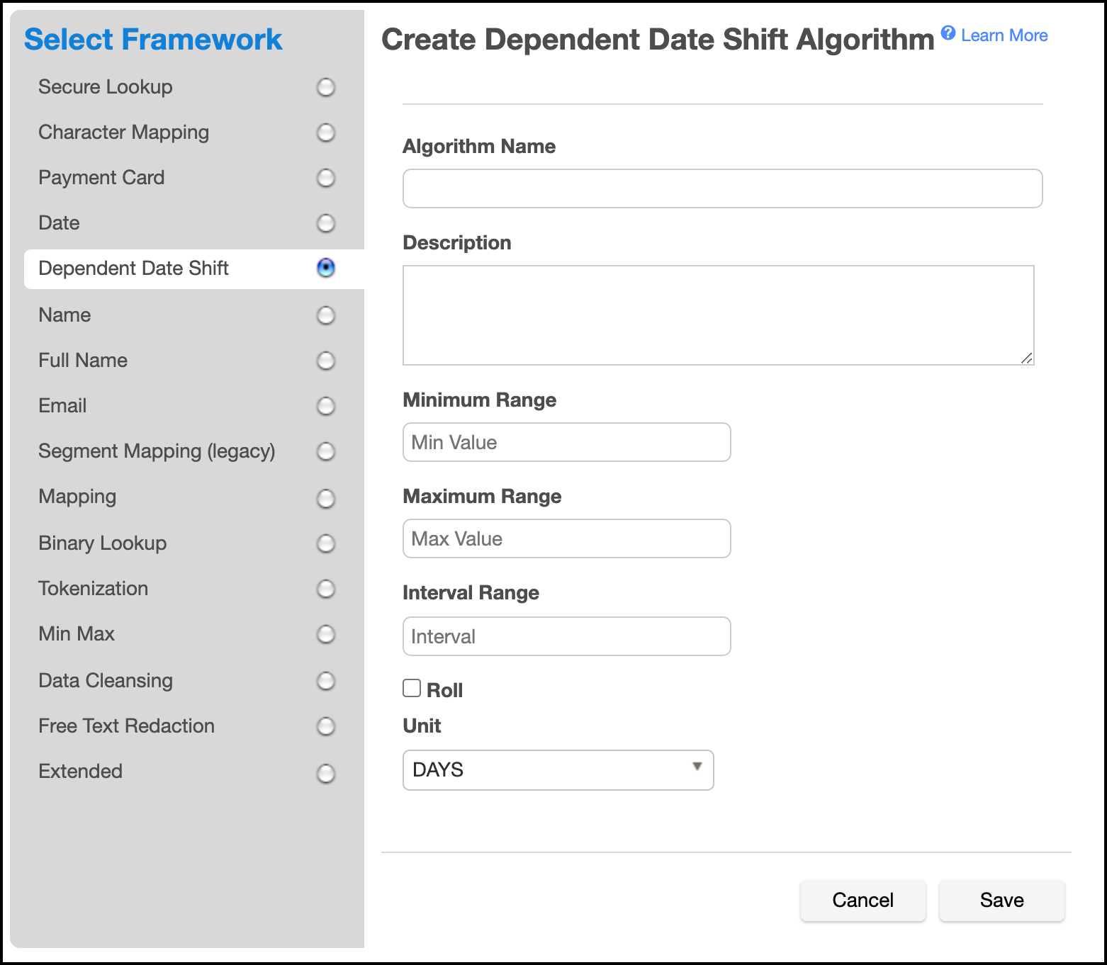 date1when masking. The range is inclusive of this value. Negative values represent units of time in the past and positive values represent units of time in the future. Ifdate1is not provided, this is applied todate2.Enter a Maximum Range. This number represents the largest number of time units that will be added to