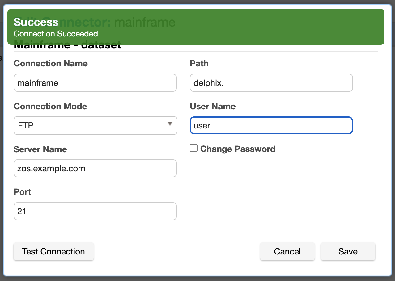 All database types have a Test Connection button at the bottom left of the New Connector window. We highly recommend that you test your connection before you save it. Do so before you leave this window. When you click Test Connection, Delphix uses the information in the form to attempt a database connection. When finished, a status message appears indicating success or failure.