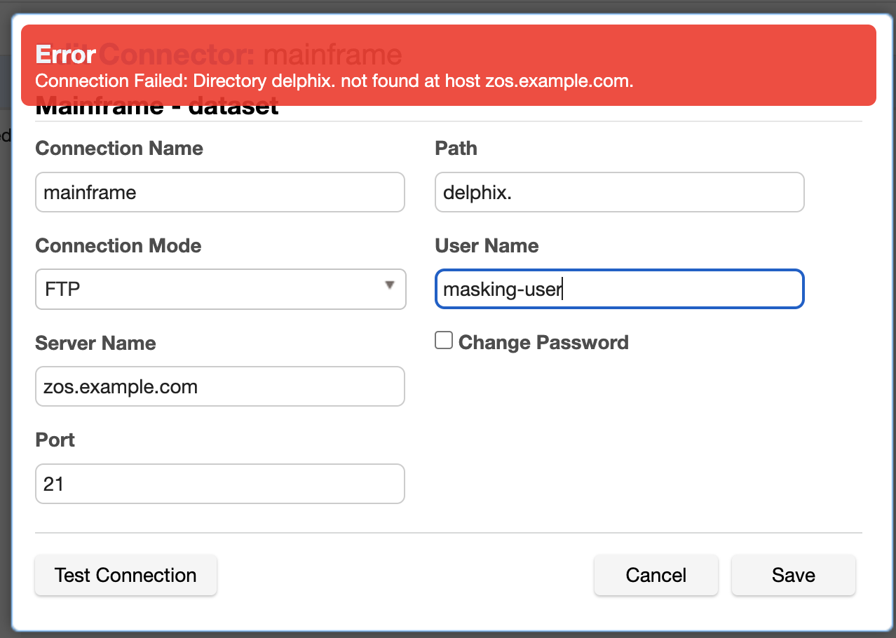 The Masking Engine can connect to Mainframe USS storage through both SFTP and FTP protocols, Also Mainframe MVS storage can be accessed using the FTP protocol. In order to access the mainframe data set and effectively mask its contents, users must adhere to the z/OS path name guidelines, which are