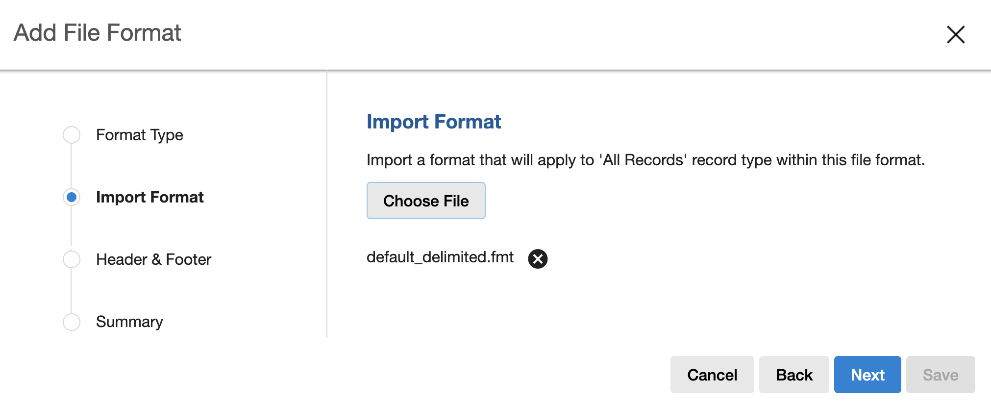Click the Add File Format button at the upper right. The Add File Format wizard appears.