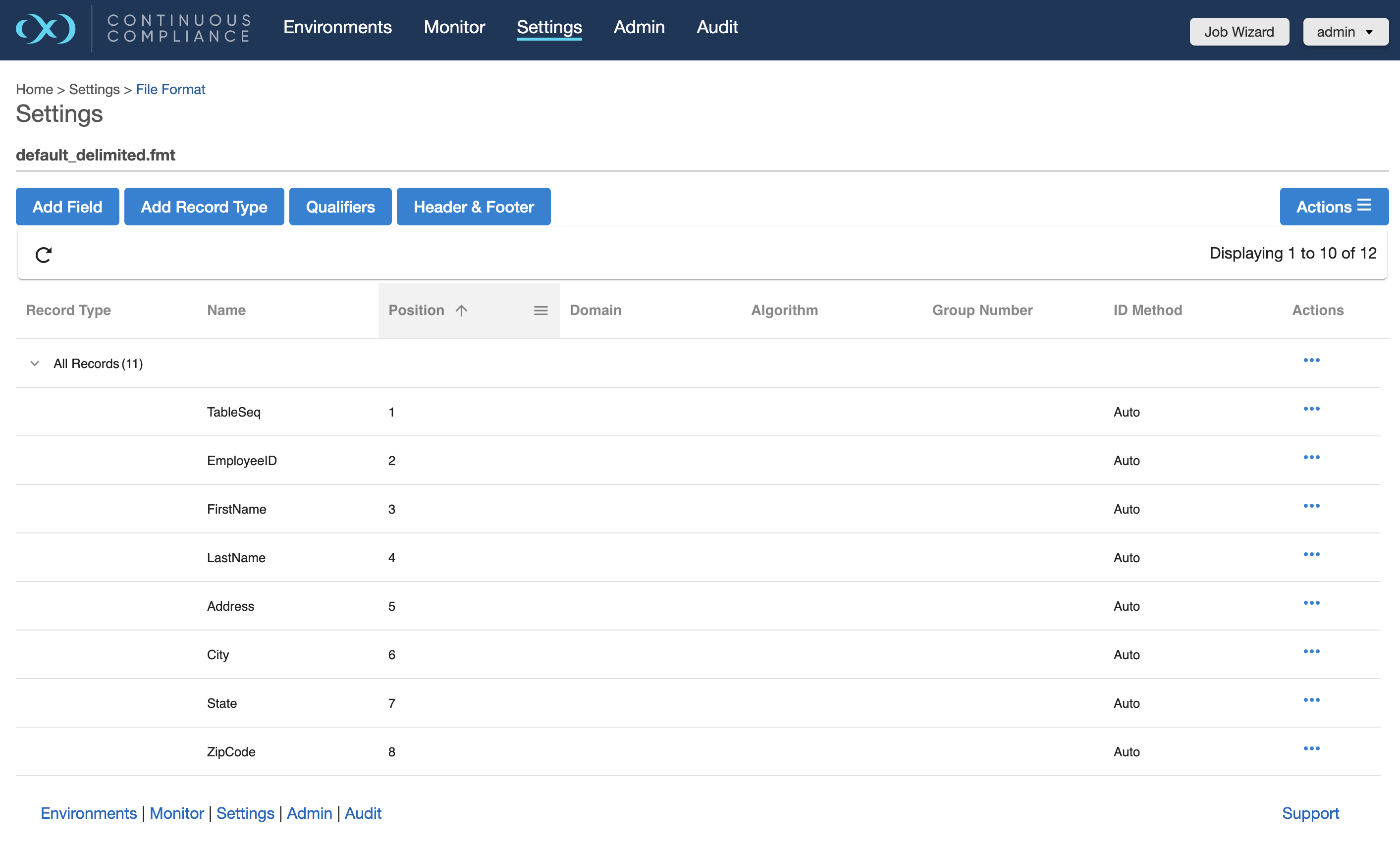 The fixed-width and delimited formats must have NO header. Make sure there are no spaces or returns at the end of the last line in the file. To be masked, the field names must be in the same order as they are in the data file.