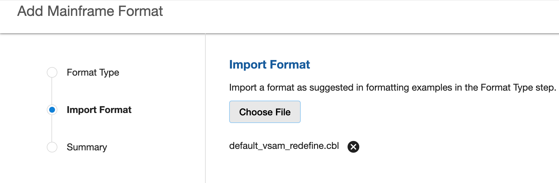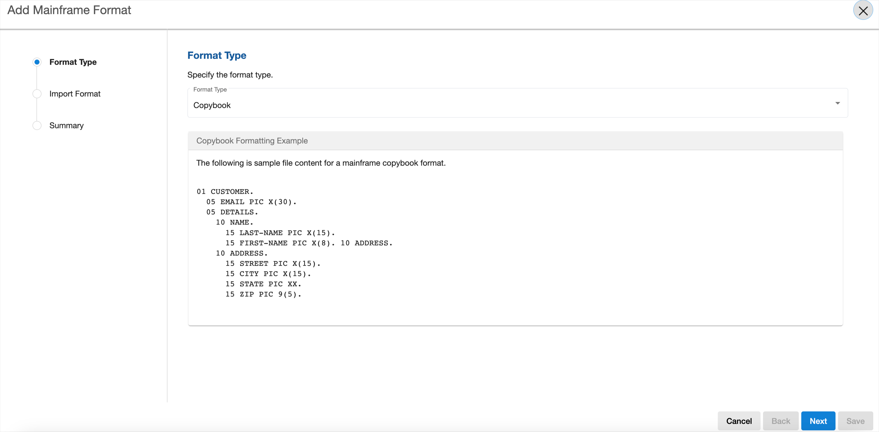 Click the Add Mainframe Format button in the upper right. The Add Mainframe Format wizard will appear.