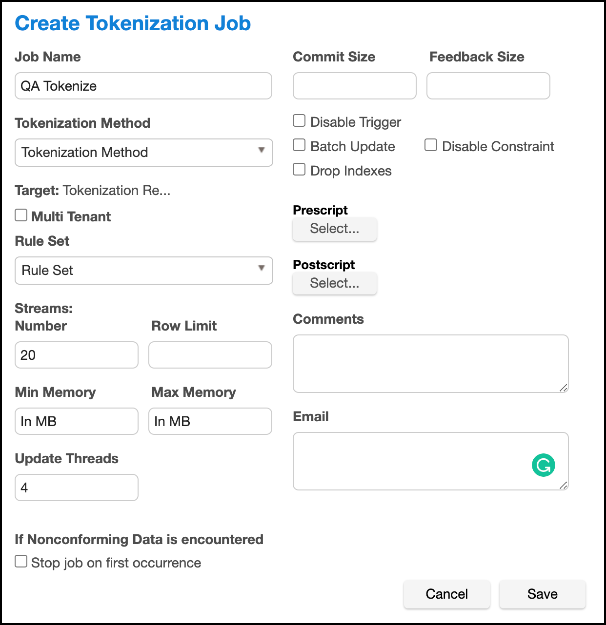 Set up a Tokenization job using the Tokenization Method. Execute the job.