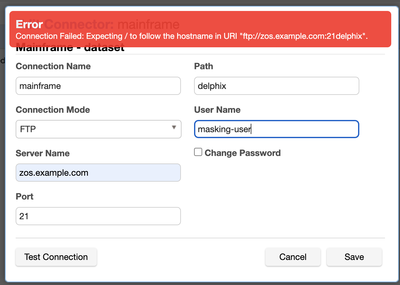 The Masking Engine can connect to Mainframe USS storage through both SFTP and FTP protocols, Also Mainframe MVS storage can be accessed using the FTP protocol. In order to access the mainframe data set and effectively mask its contents, users must adhere to the z/OS path name guidelines, which are