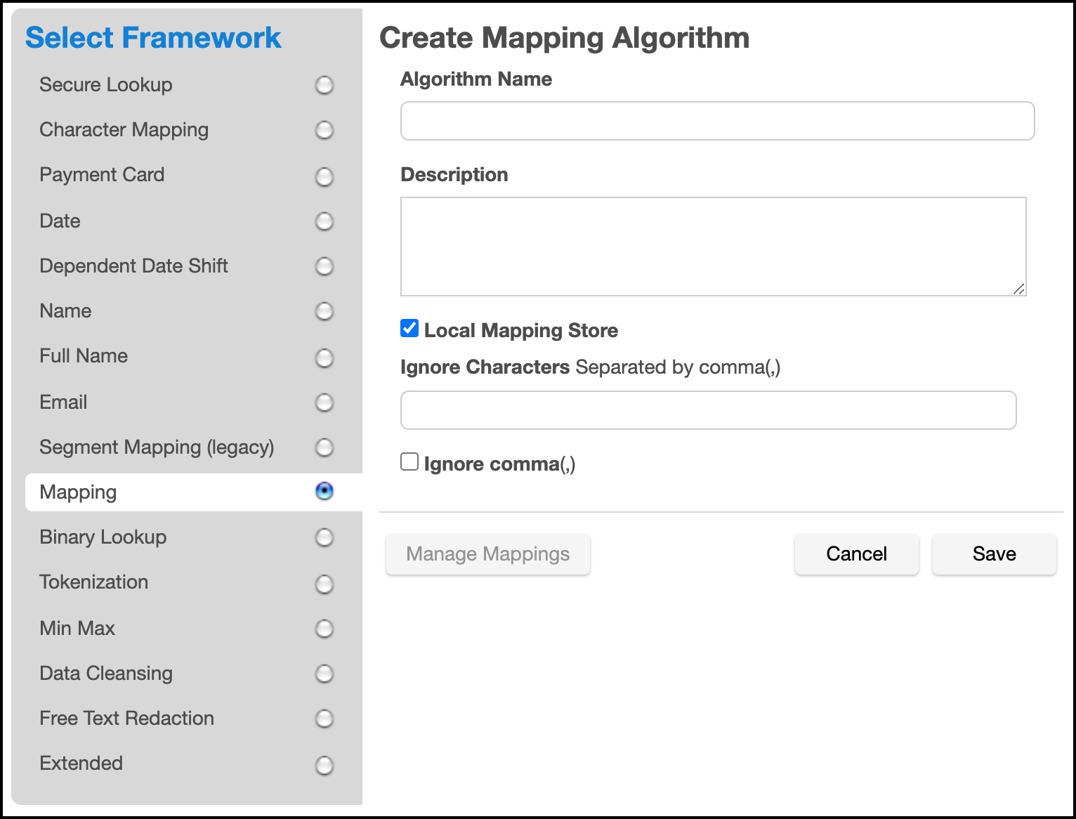 For information on creating Mapping algorithms through the API, see API Calls for Managing Algorithms - Mapping.