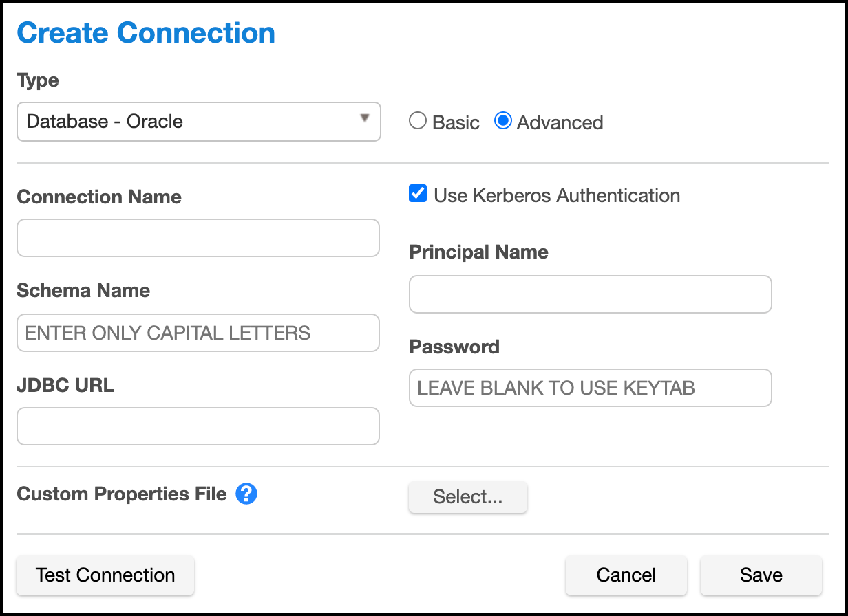 To enable Kerberized connectors your engine must be configured properly and you must configure your masking Connectors for Kerberos. Kerberos can be enabled by going to the Advanced mode on Oracle, SQL Server and Sybase. For more information, see Managing Connectors.