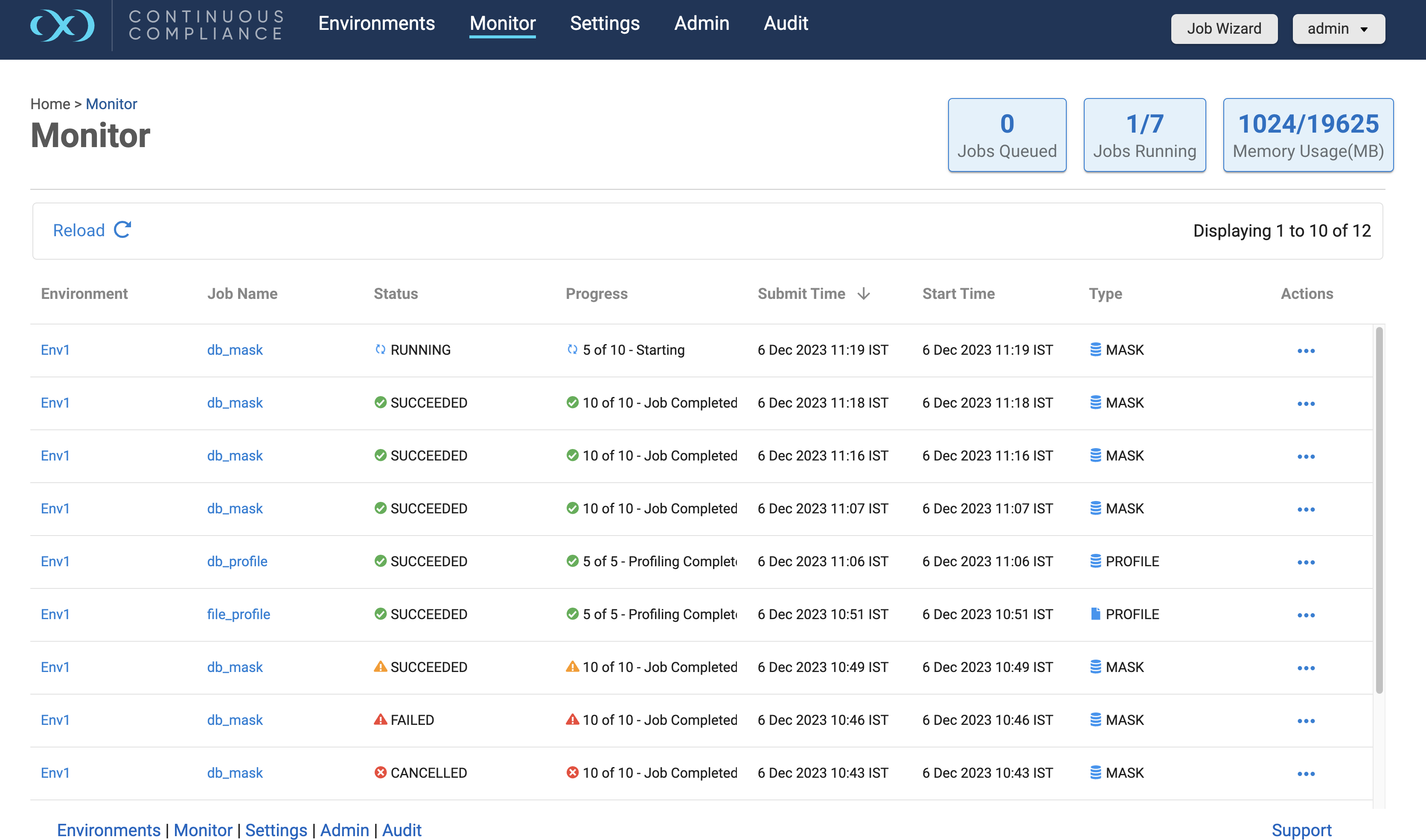 Once a job has been created and started, you can monitor its progress by navigating to the Monitor tab or by clicking on the name of the job on any screen. The monitoring tab shows you a list of executed jobs, their progress as well and their current status. To get even more detail on the progress of an individual job, click on the Job Name.