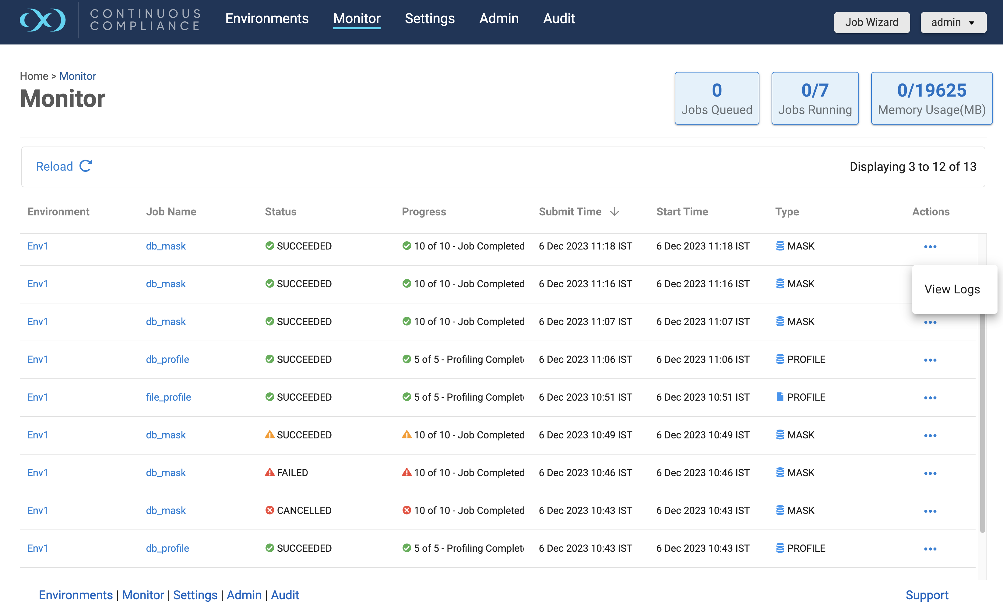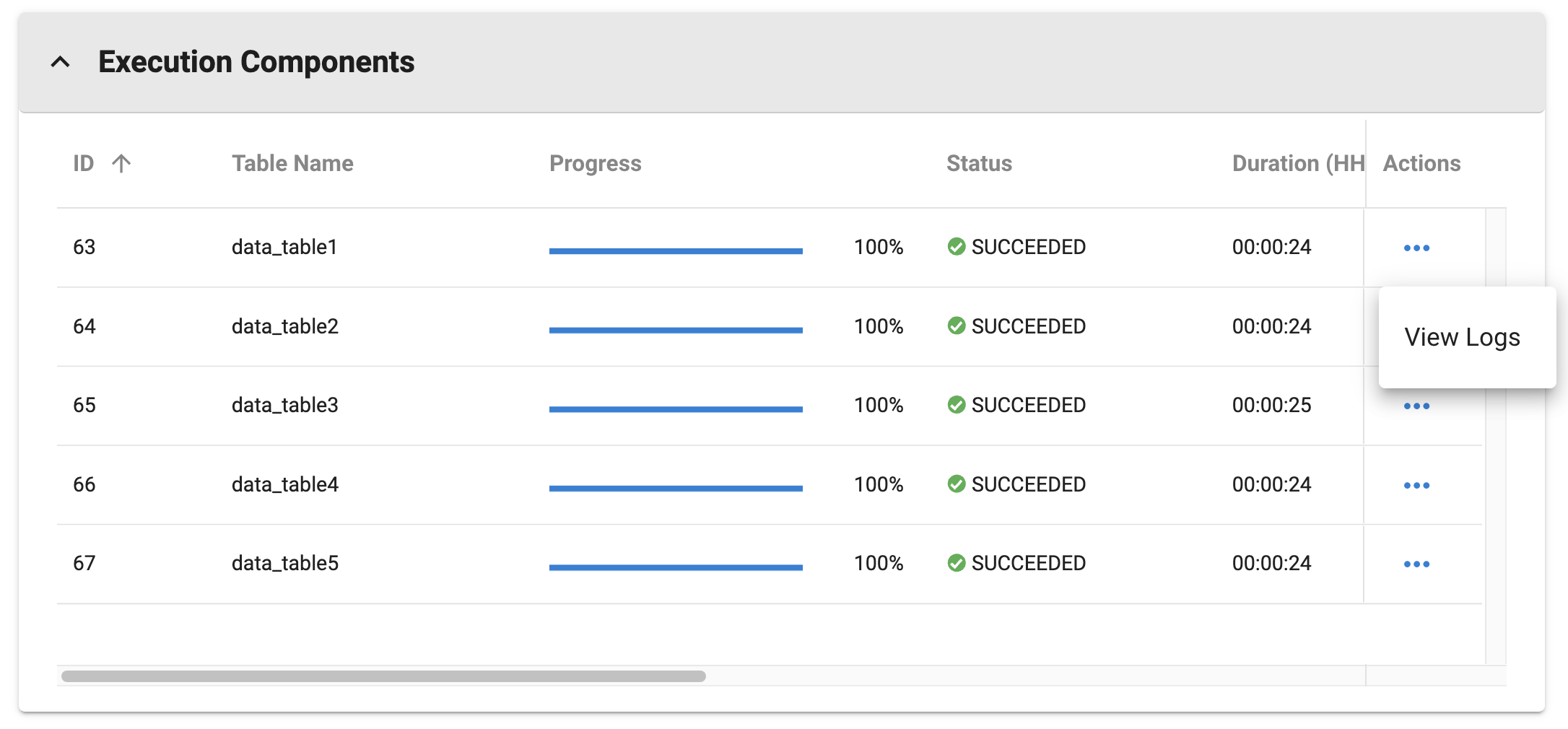 Click on View Logs from the Action (…) button to the right of the corresponding execution, if you want to view the logs of completed execution.