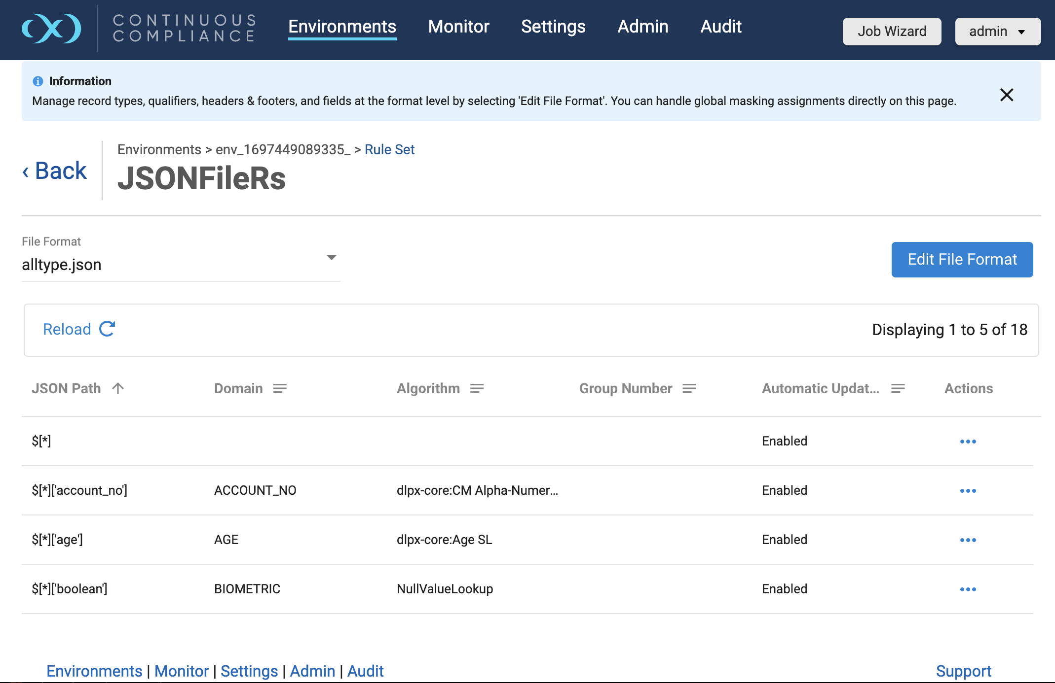 The Continuous Compliance Engine defaults to a Masking Algorithm, as specified in the Settings screen. If necessary, you can override the default algorithm.