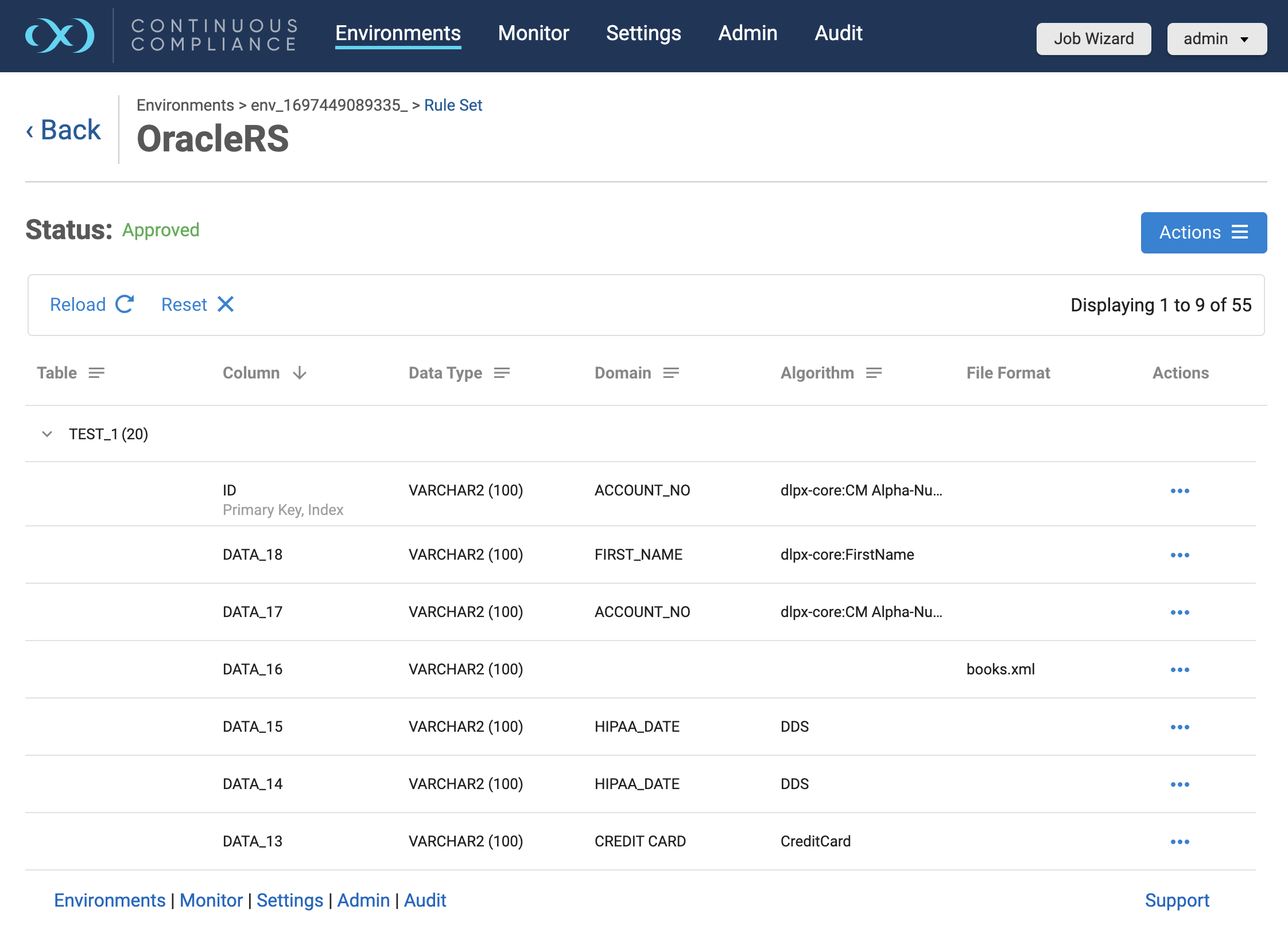 If the database rule set status is Approved, masking jobs using this rule set may be executed.