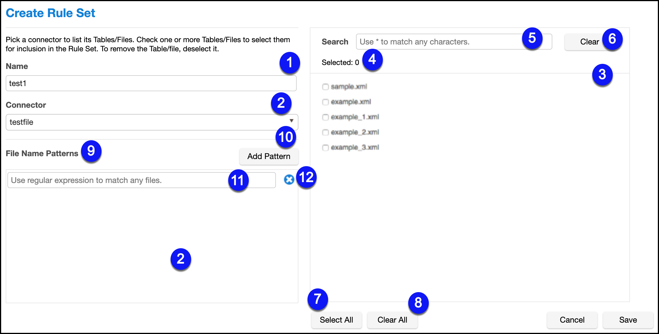 2 | Connector List When creating a new rule set, all available connectors will be listed here. When editing an existing rule set, only the connector currently in use will appear. |