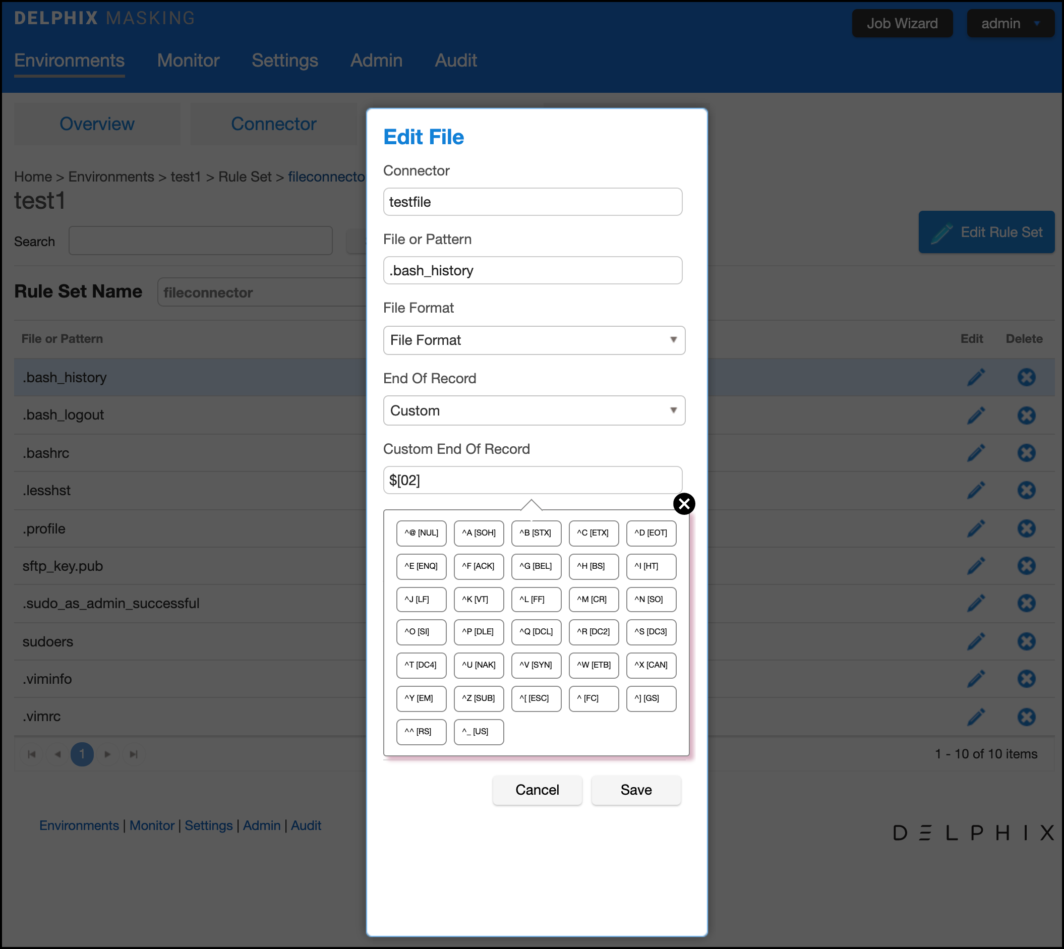 For all other file types, select the end-of-record to let Delphix know whether the file is in windows/dos format (CR+LF) or Linux format (LF).