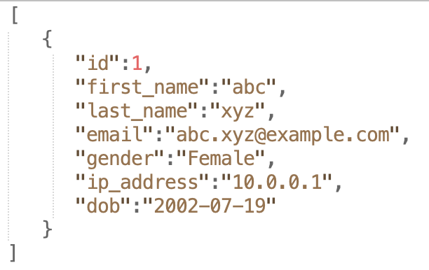 For JSON file formats, you can use the data file itself or a subset of the file you want to mask as the format.