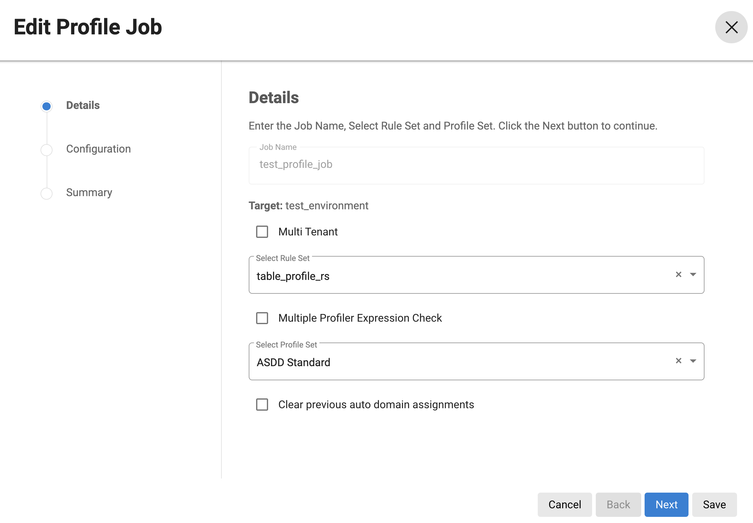 On clicking Edit action, a wizard will appear for editing the Profile job. The job name is not editable after creation hence it will be disabled for Editing. For other fields, the user can edit and save.