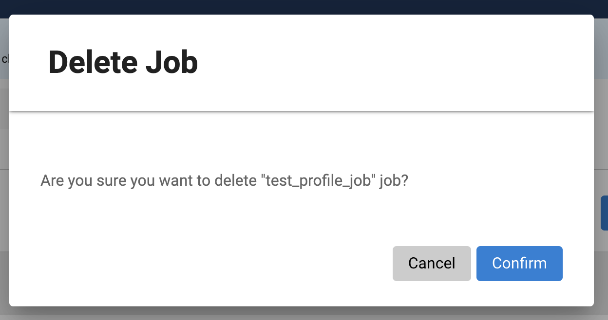 On clicking Delete Action, it will prompt for confirmation. Click on Confirm to delete the job.