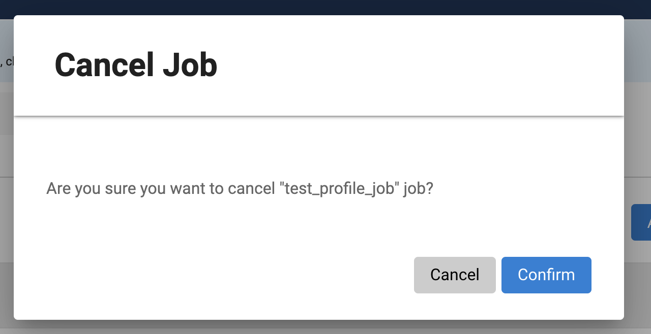 On clicking Cancel Action, it will prompt for confirmation. Click on Confirm to cancel the job.