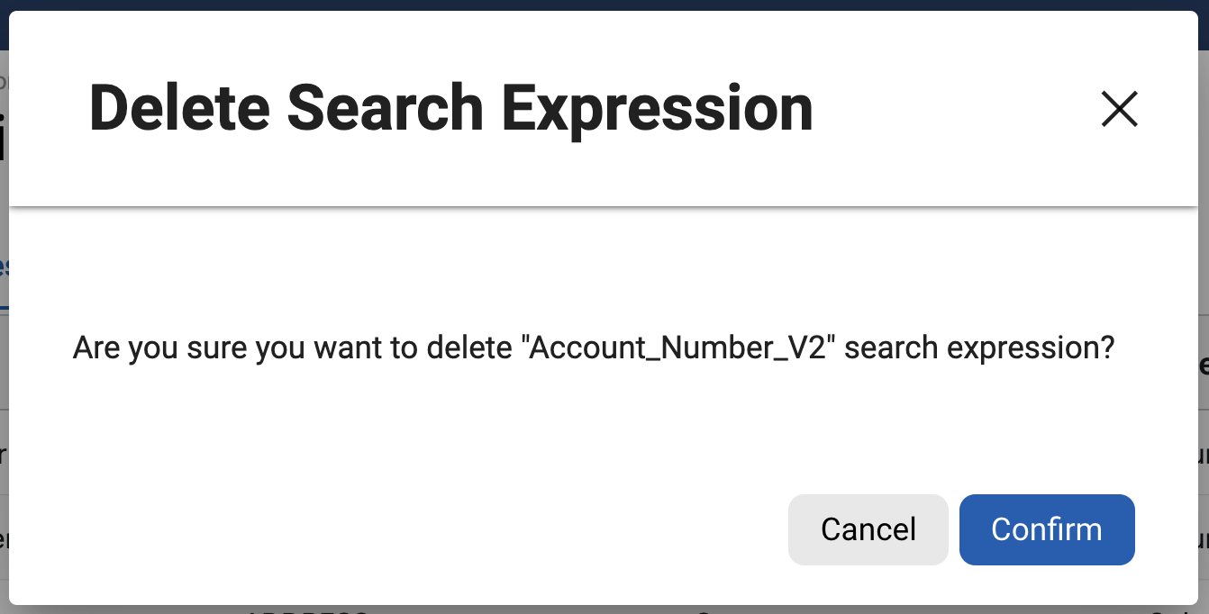 On clicking Delete Action, it will prompt for confirmation. Click on Confirm to delete the expression. Deletion will be blocked if the expression is currently assigned to one or more profile sets.