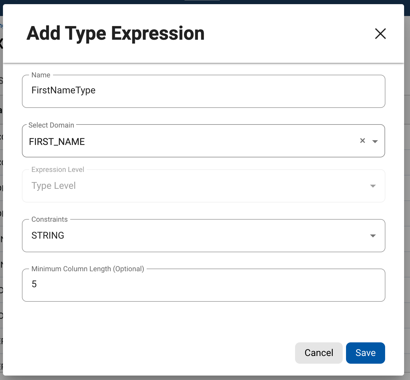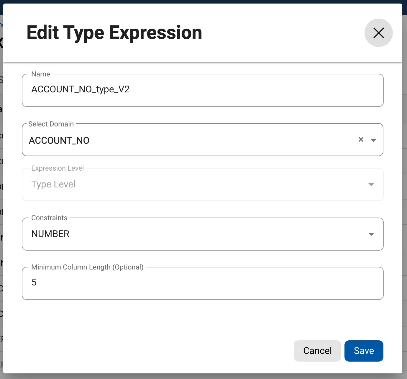 On Clicking Edit action, a dialog will appear for editing the type expression.