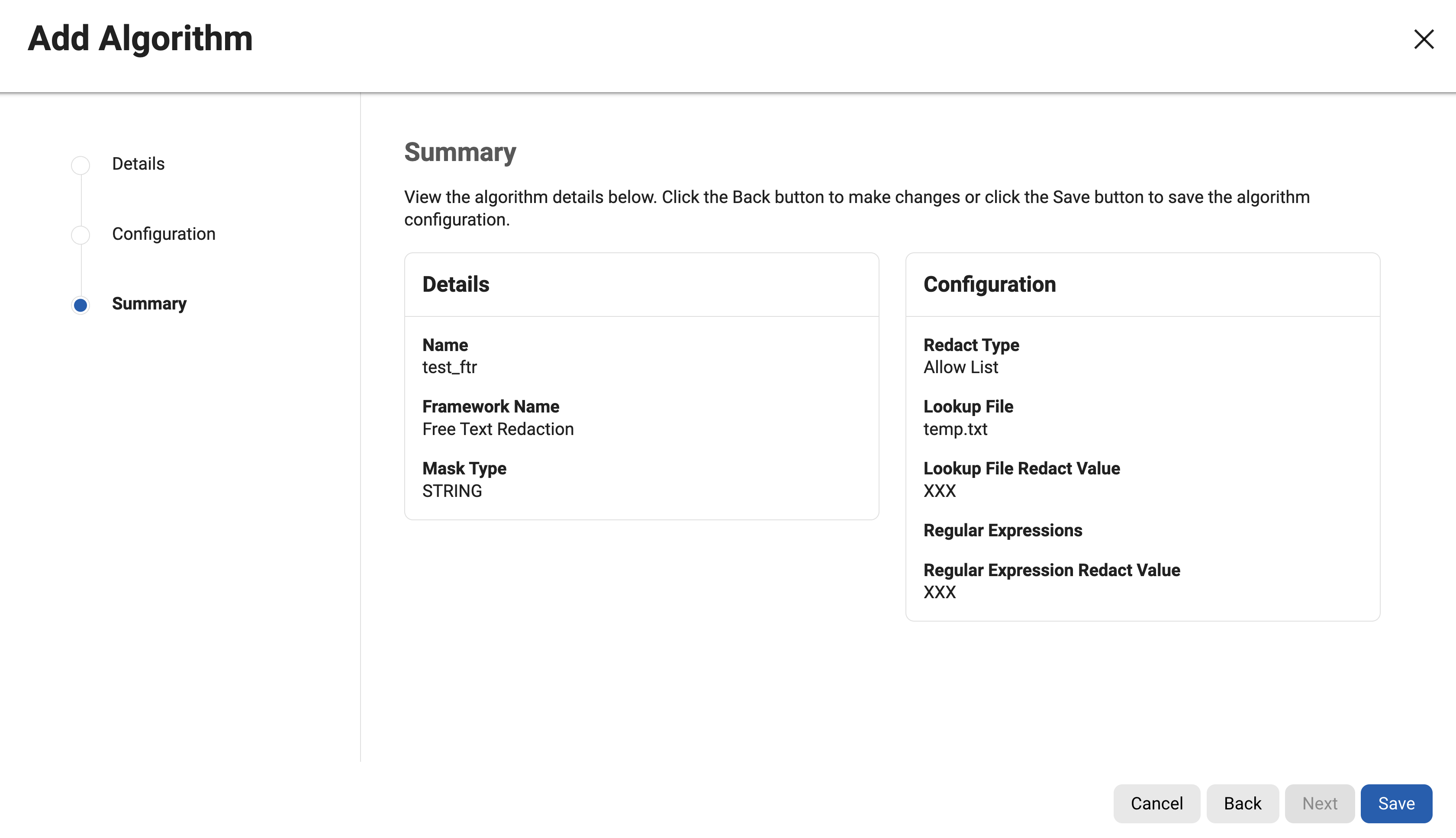For information on creating Free Text Redaction algorithms through the API, see API Calls for Creating Algorithms - Free Text Redaction.