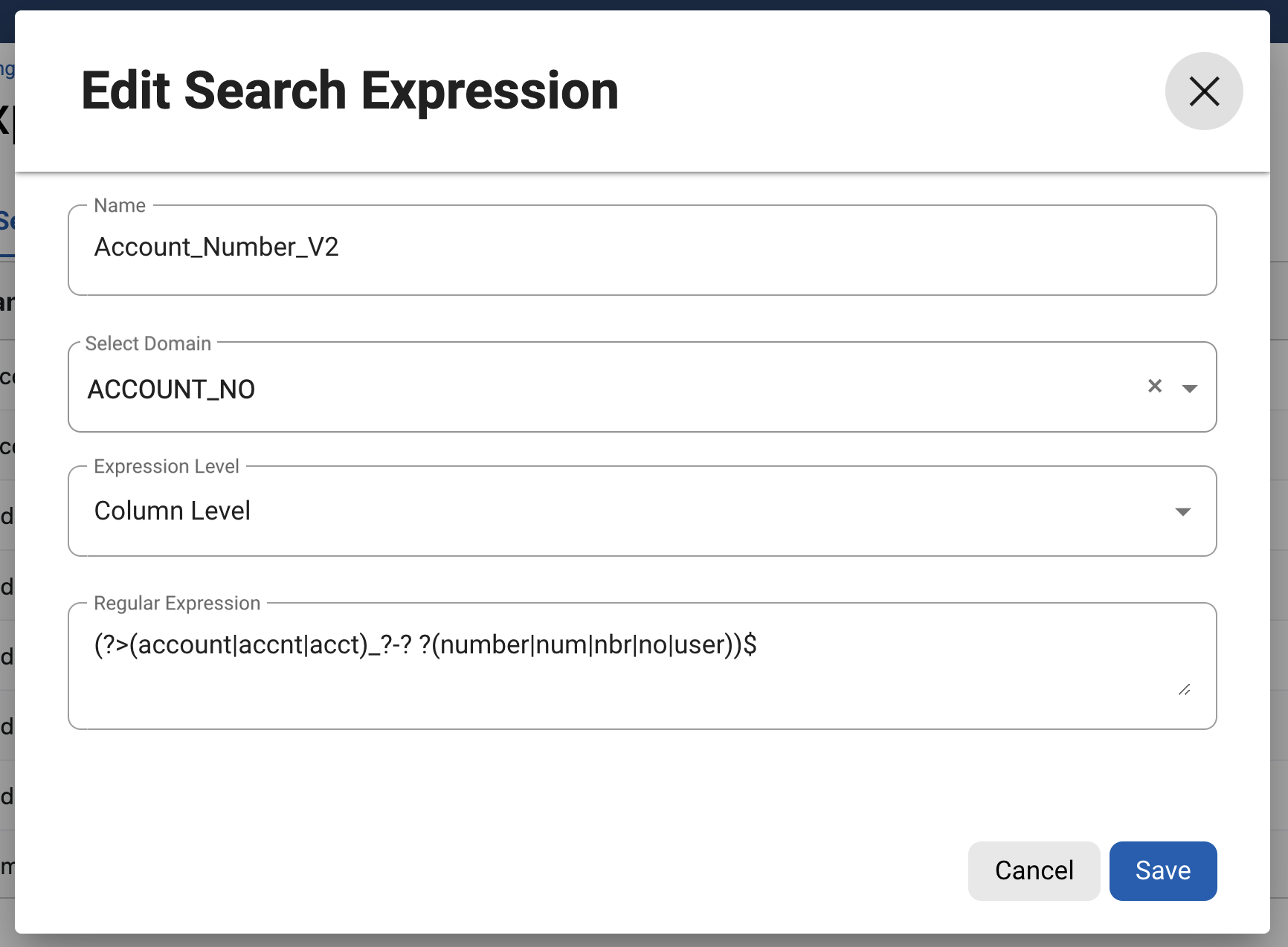 On Clicking Edit action, a dialog will appear for editing the search expression.