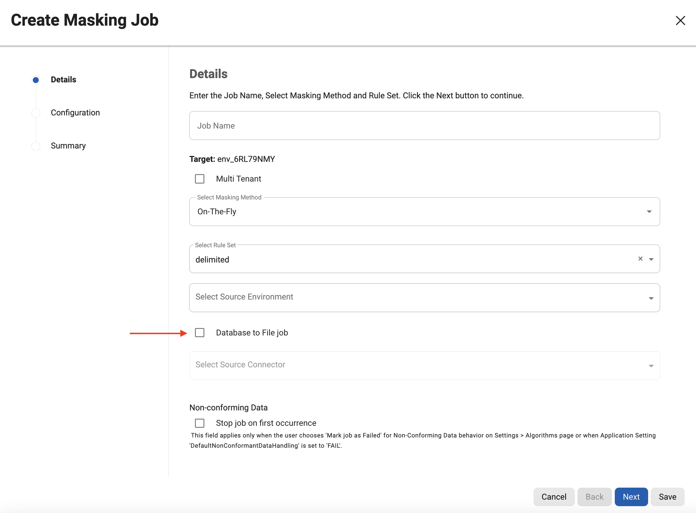 Multi-Tenant: This option allows existing rule sets to be reused to mask identical schemas via different connectors. The connector is selected at job execution time.