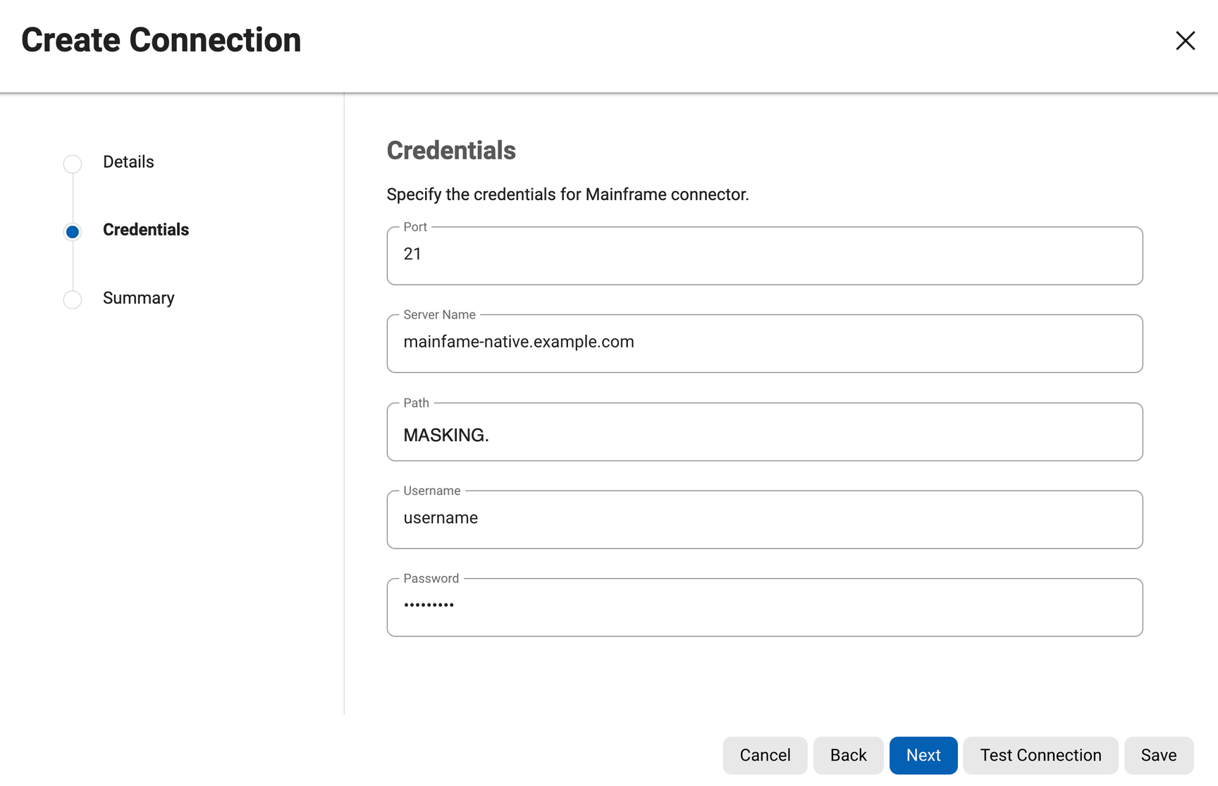 The Continuous Compliance Engine can connect to a wide range of host systems, including Mainframes, Linux, and Windows, as long as they support SFTP, FTP, and FTPS protocols. Furthermore, mainframe MVS storage can be accessed using the FTP and FTPS protocol. In order to access the mainframe data set and effectively mask its contents, you must adhere to the z/OS path name guidelines described below. Failing to meet these criteria will result in the user being directed towards the USS storage, rather than the mainframe MVS storage.
