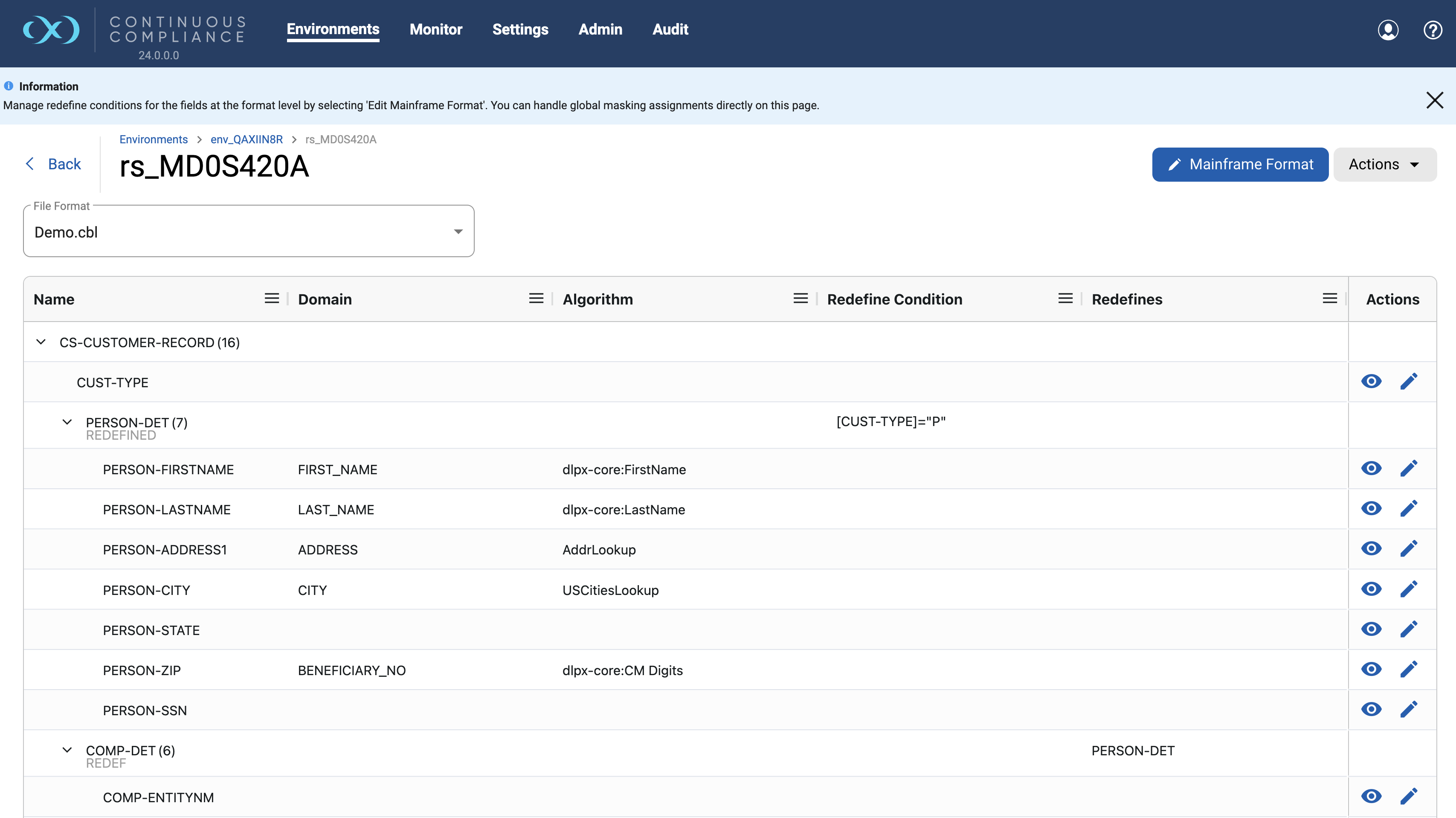 1. Changing the Is Masked, Algorithm, and/or Domains fields for the respective Table/Column or File/Field in the CSV file accordingly.