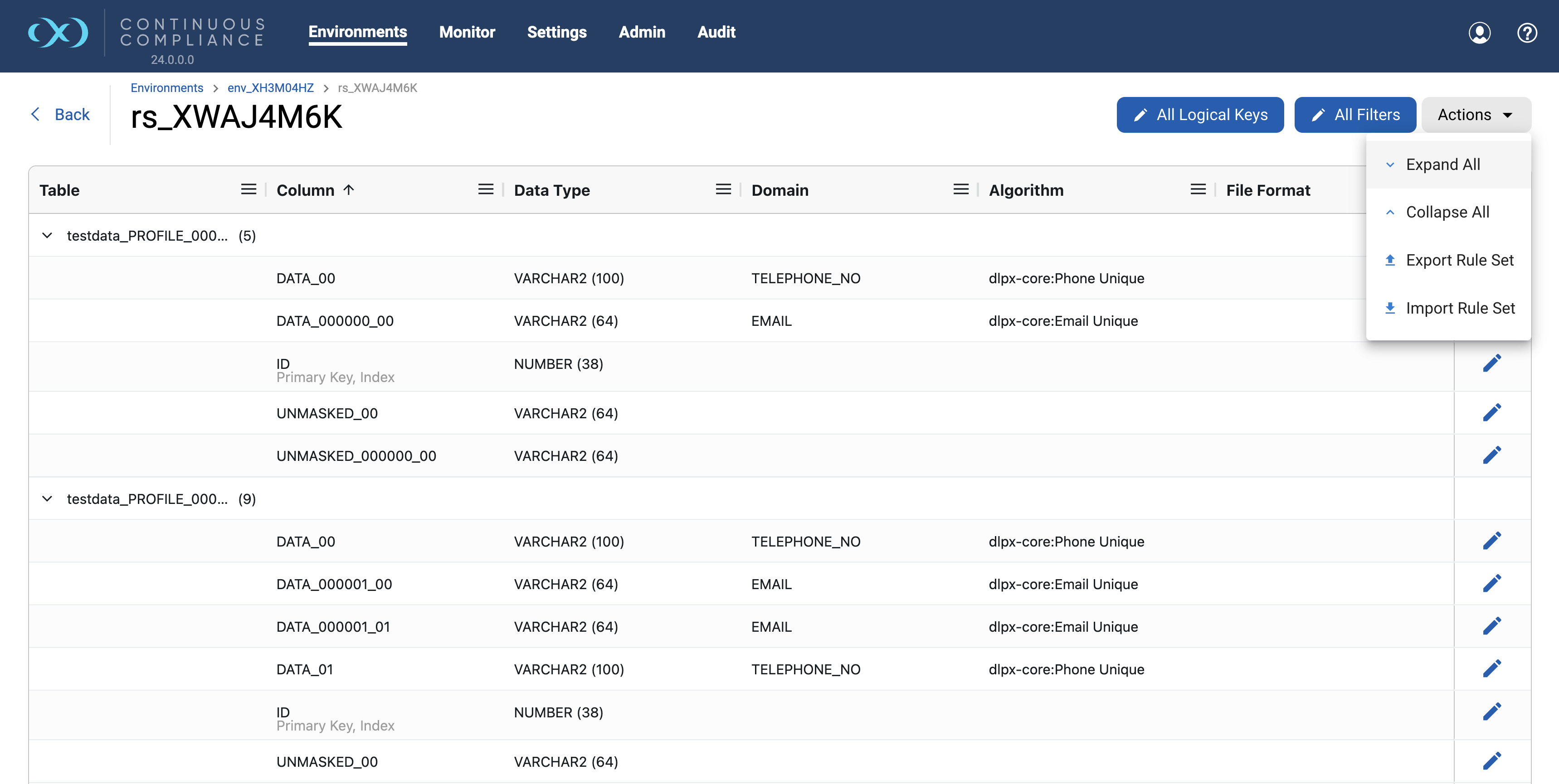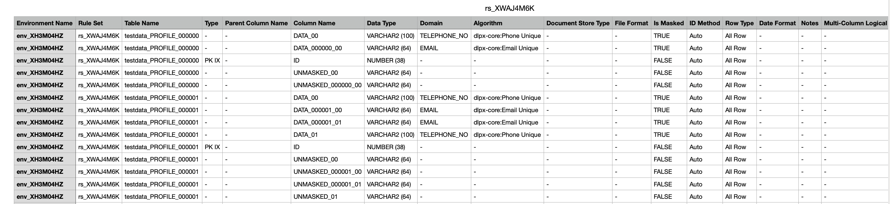 To get a spreadsheet capturing the profiling results for the rule set, click on Actions → Export Rule Set from Actions near the top of the page, and a CSV file will be created.