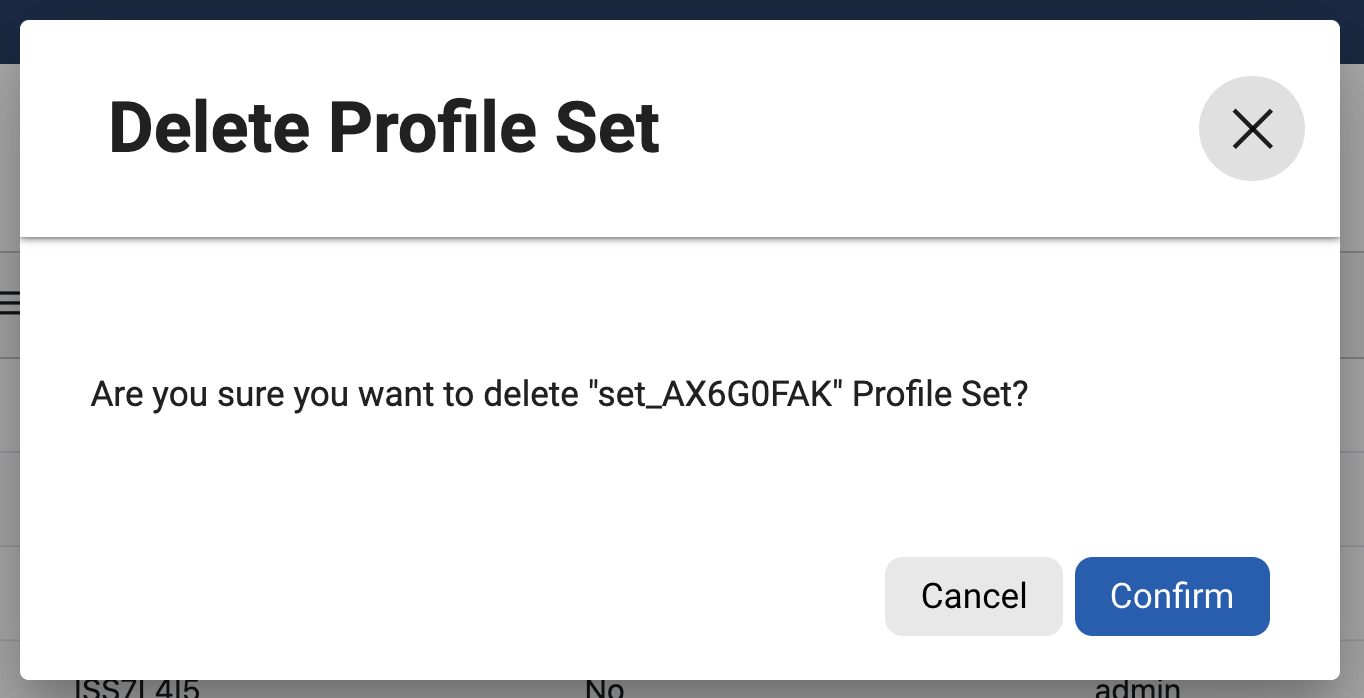 Clicking Delete Action will prompt for confirmation. Click on Confirm to delete the profile set. You will be blocked from deleting a profile set if it is currently assigned to any jobs.