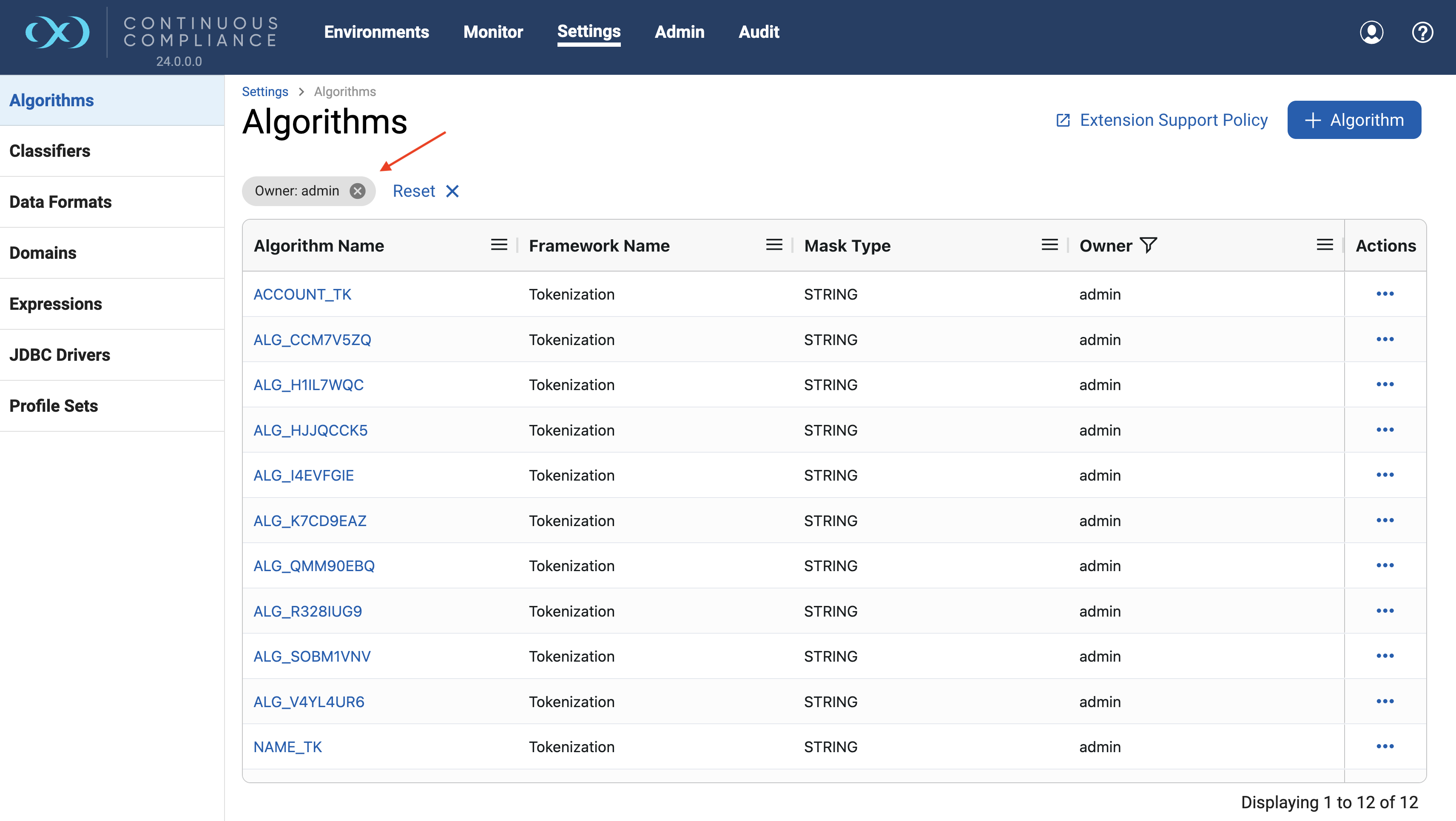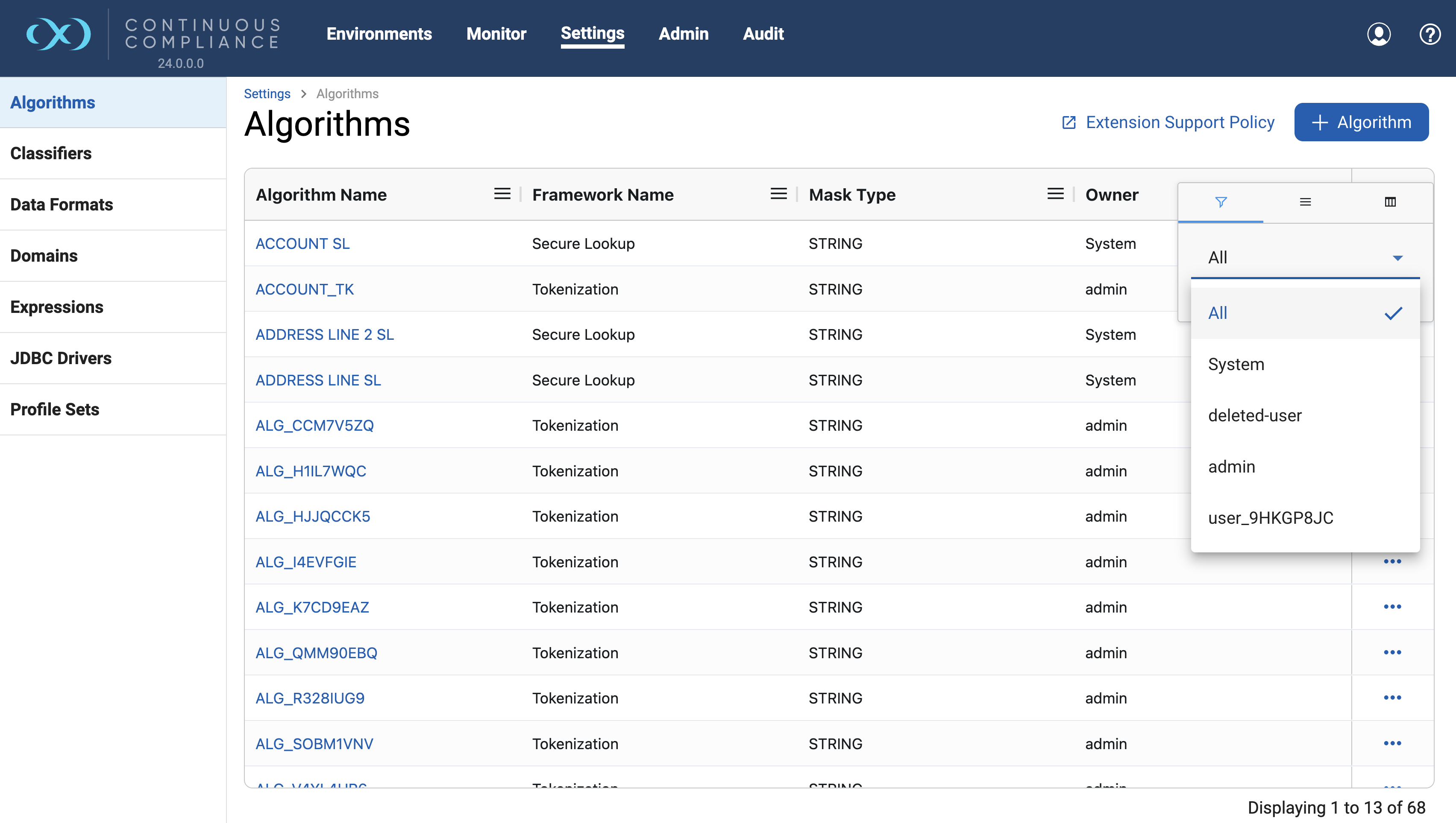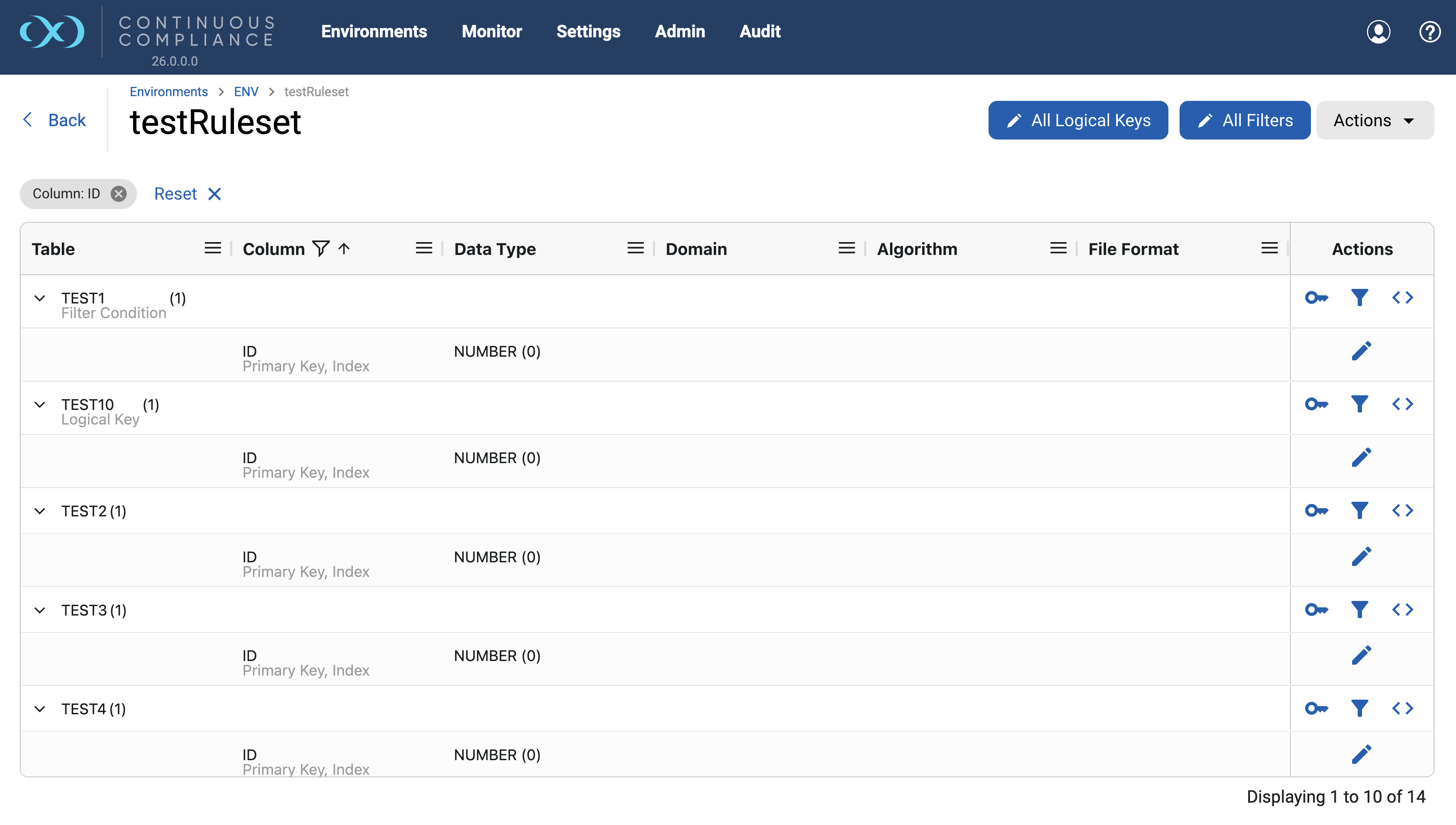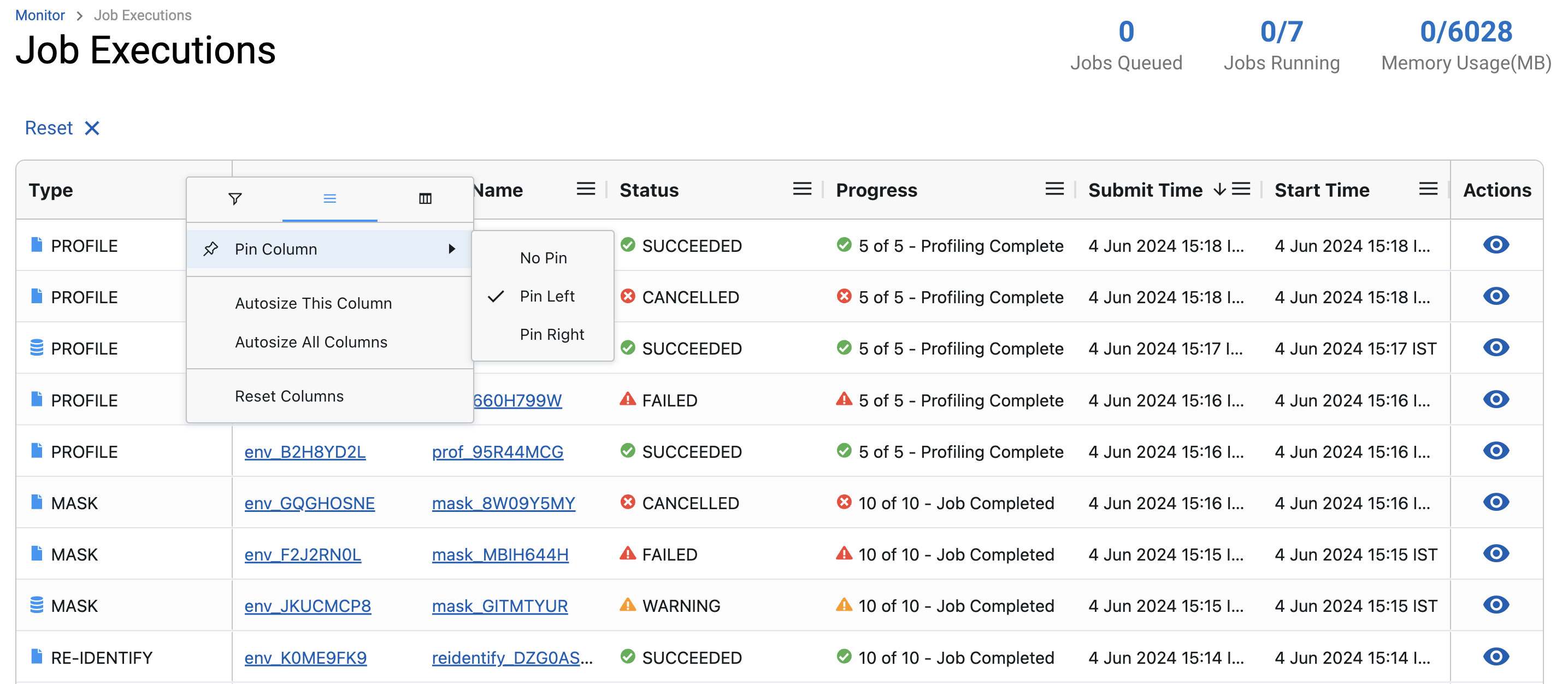 This section gives detailed information about how to use the Grid displayed on the Engine UI. UI for Domains, Classifiers, Profiler Sets, Roles, Inventory, Rule Sets, etc displays information using a Grid structure. Each implemented Grid supports functionality like sorting, filtering, pinning, etc. Each subsection gives information about how to use Grid functionalities.
