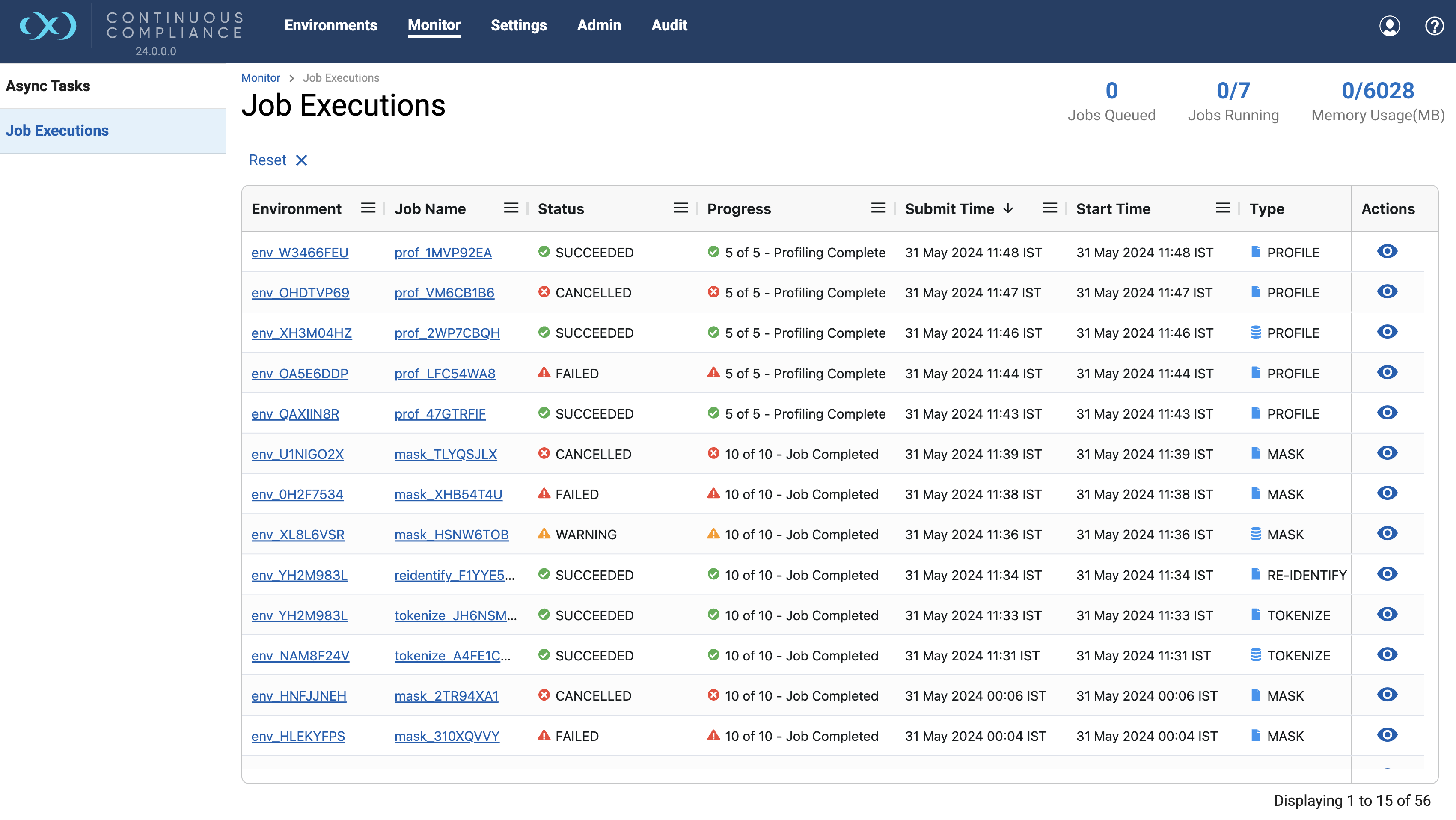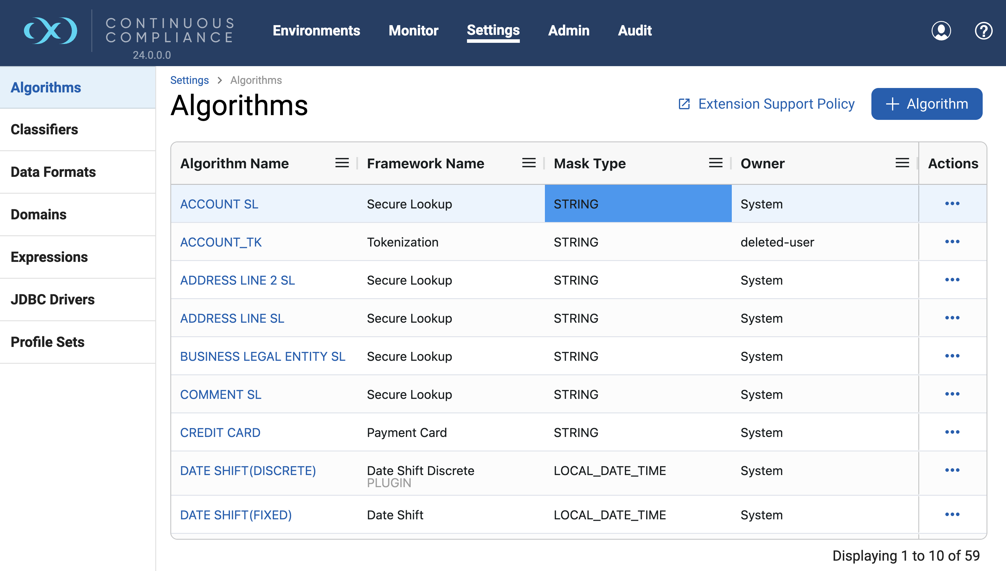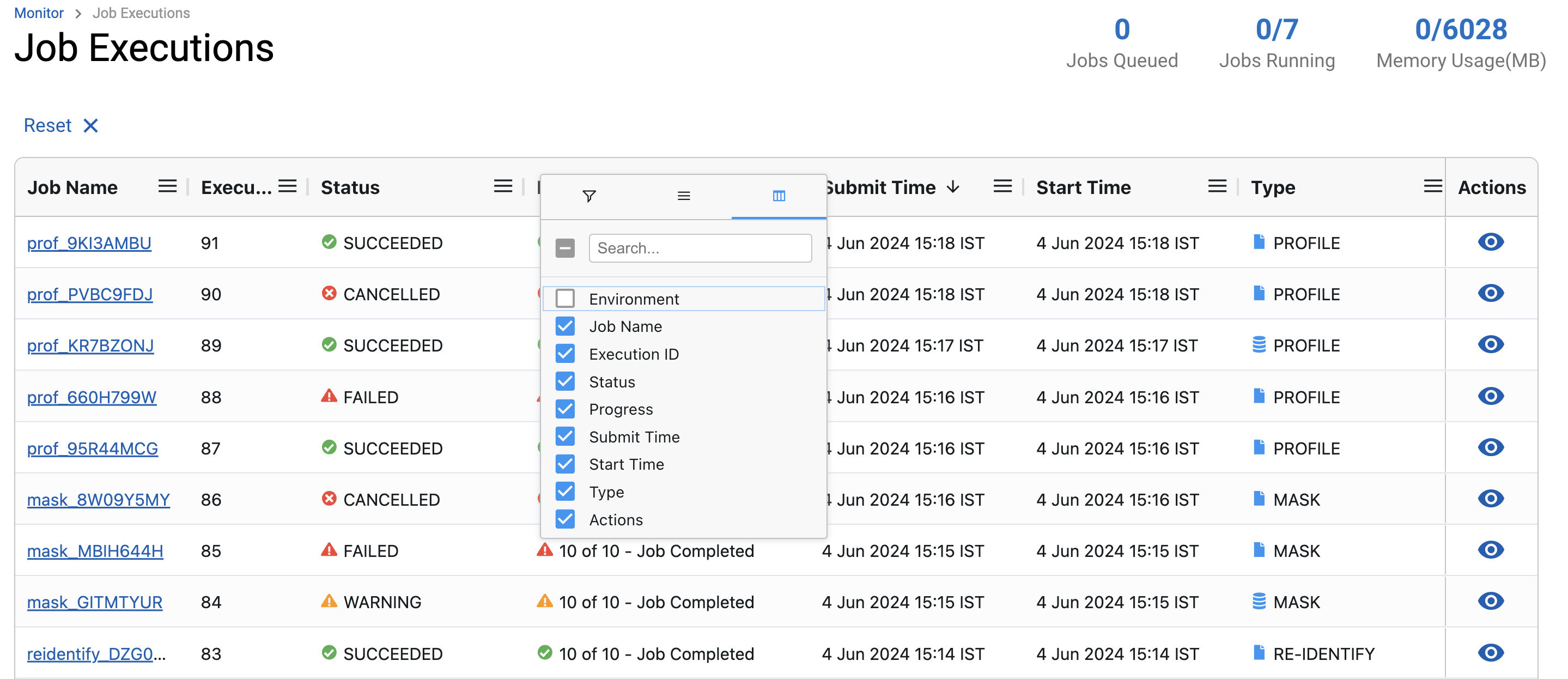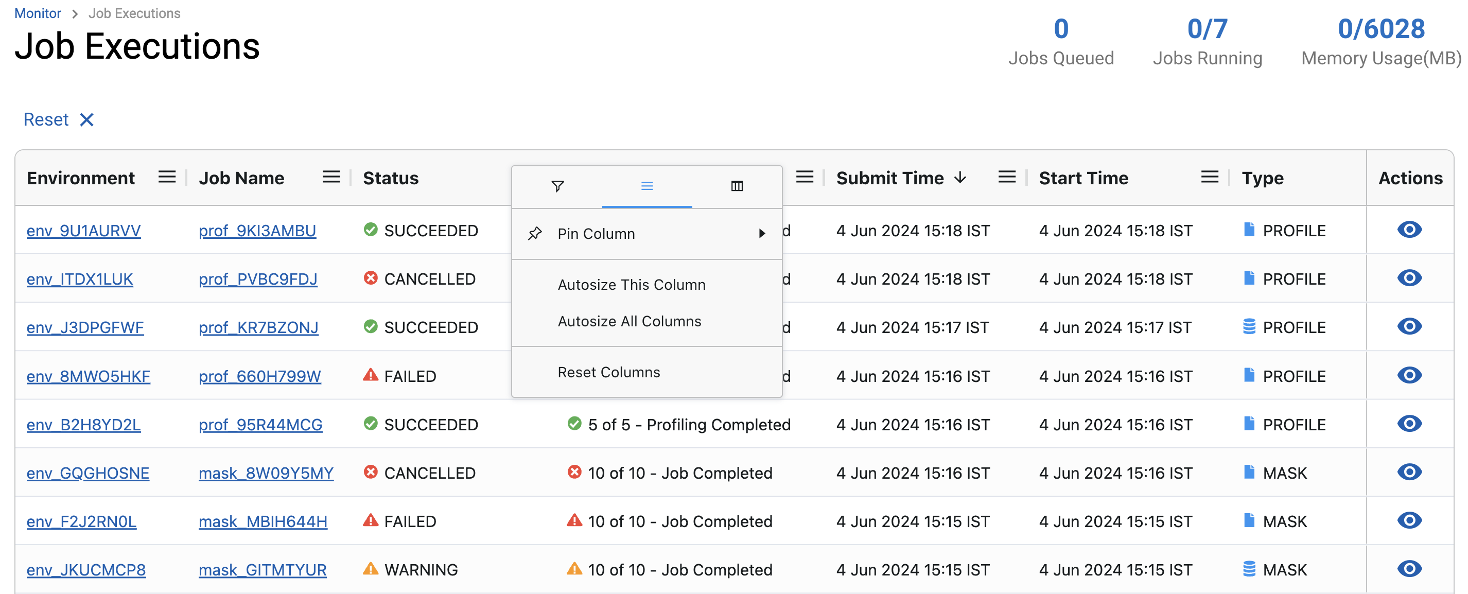 To perform an action on any of the rows, Click the (…) button to the right of the corresponding row under the Actions column, list of actions will be visible. If any action is not supported or not permitted for that row then it will be disabled.