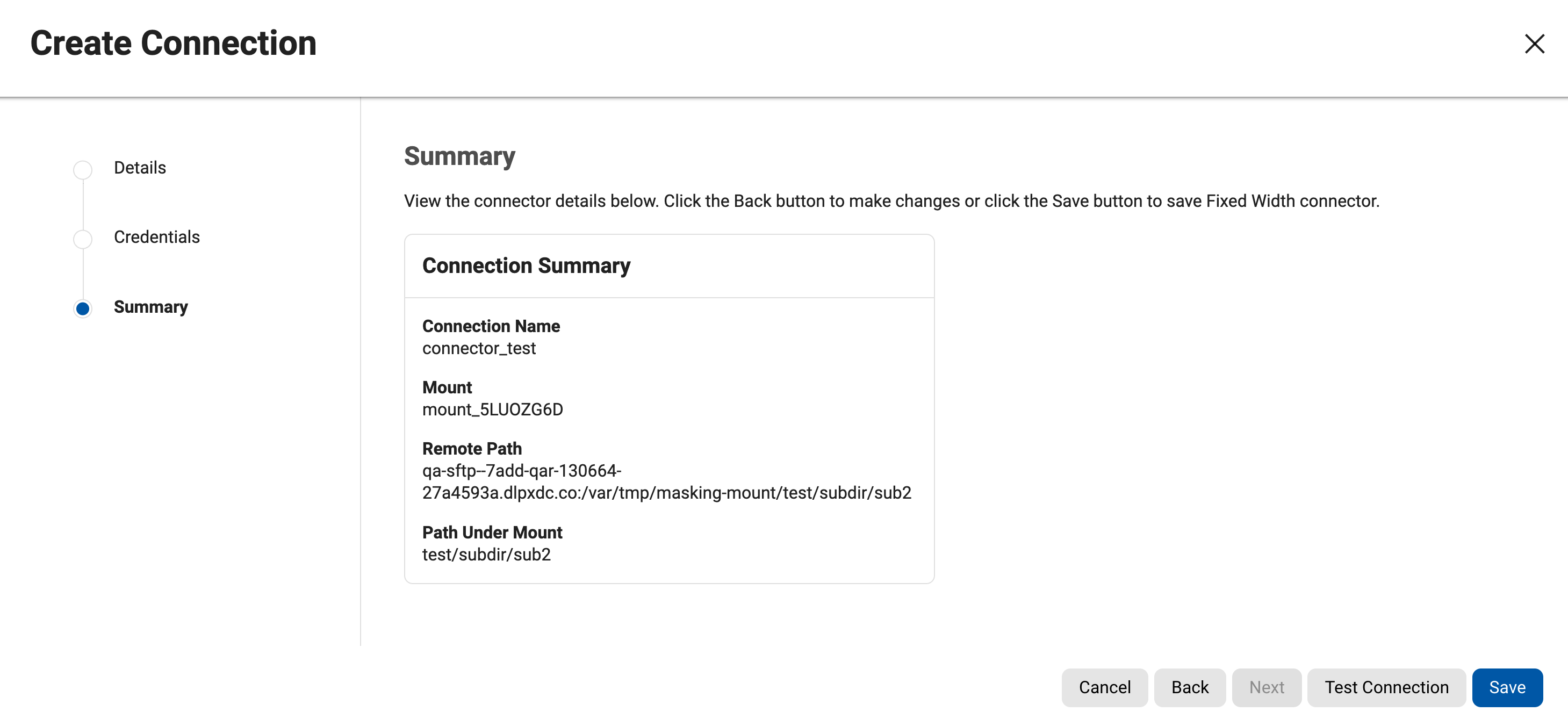 Details: While creating a connector, when any file source type is selected, the details step provides the connection mode dropdown. There are seven options: