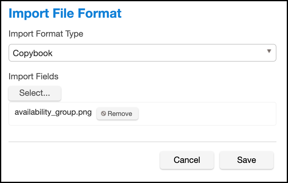 Note: The contents of the imported file vary for Delimited, Fixed Width, Copybook (Mainframe), and XML types.Click Save.