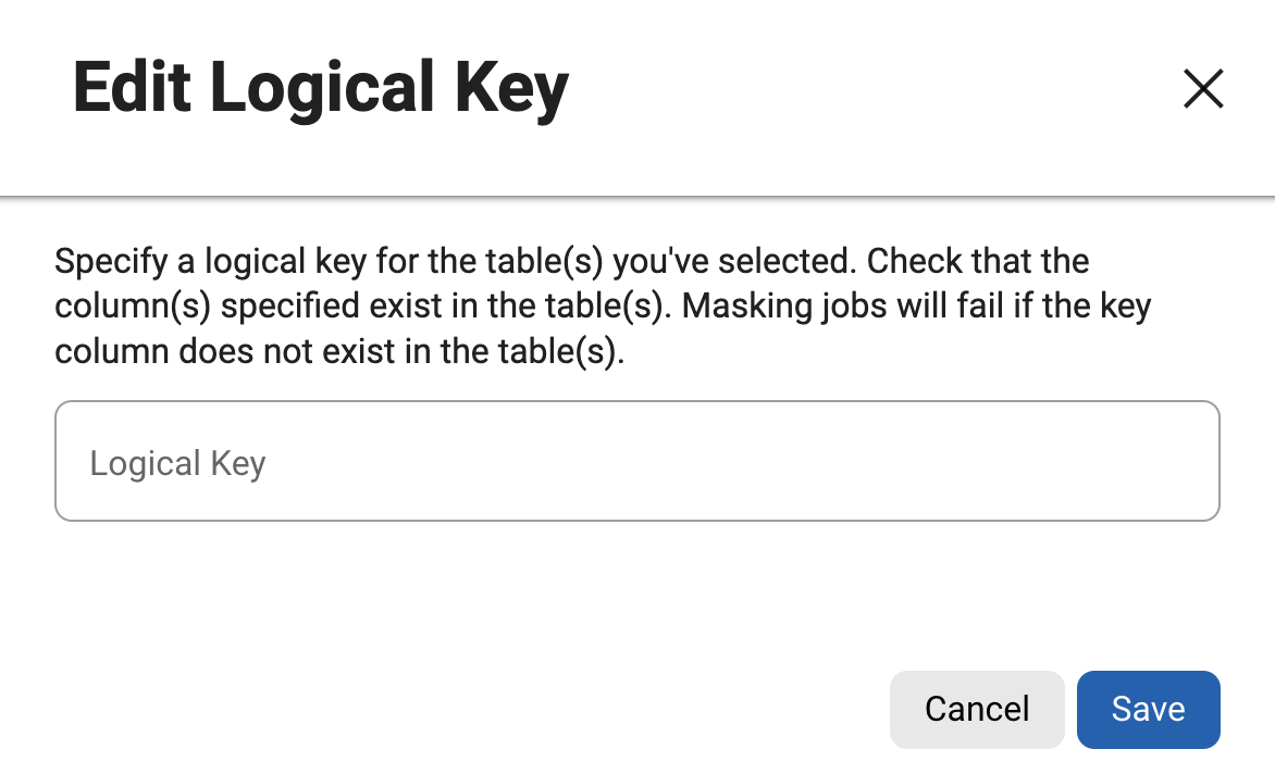 If your table has no primary keys defined in the database, and you are using an In-Place masking strategy, you must specify an existing column or columns to be a logical key. This logical key does not change the target database; it only provides information to Delphix. For multiple columns, separate each column using a comma.